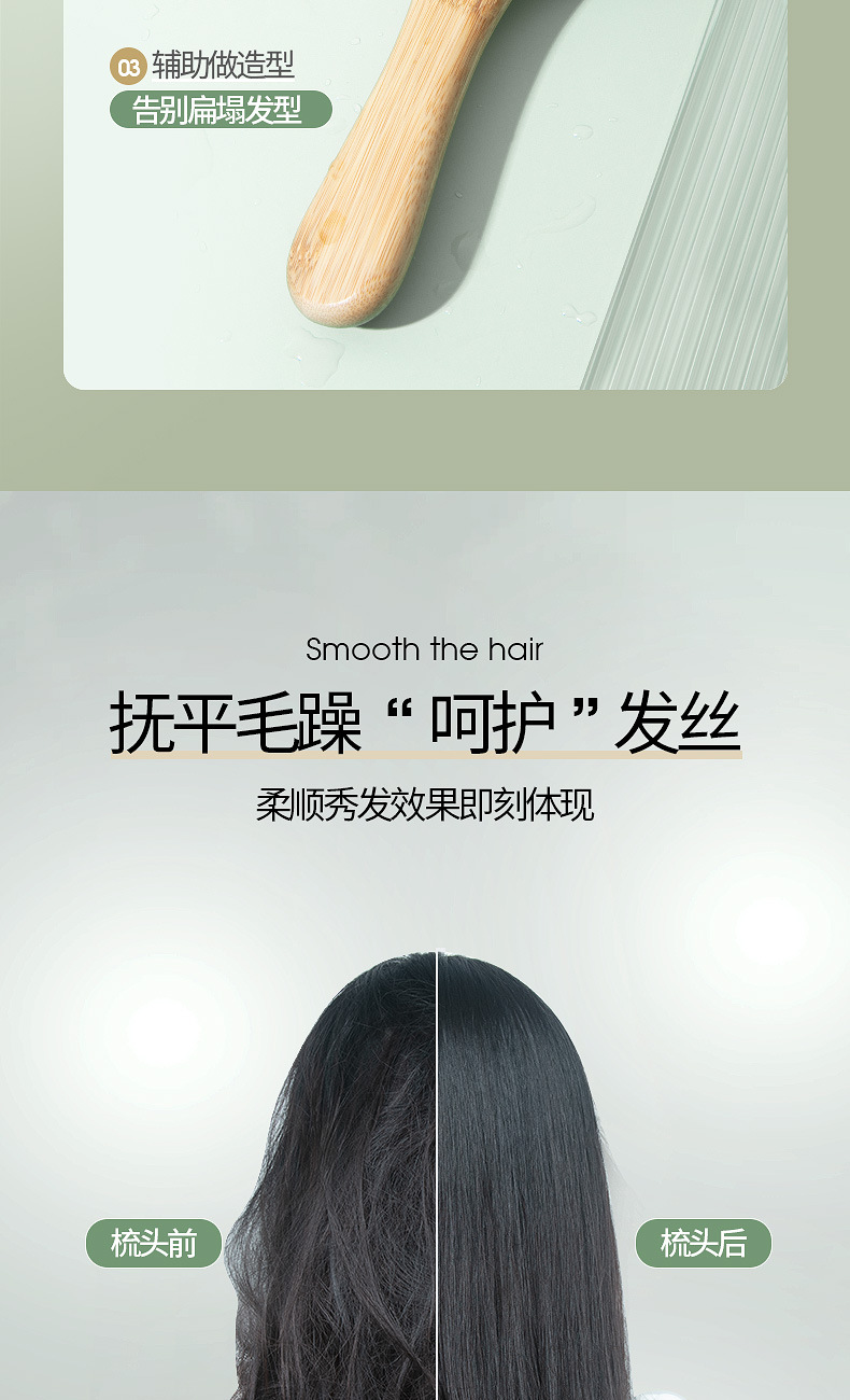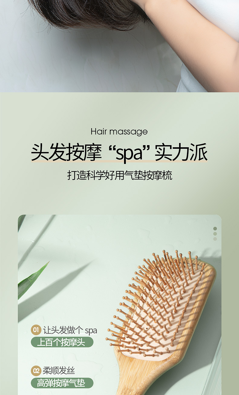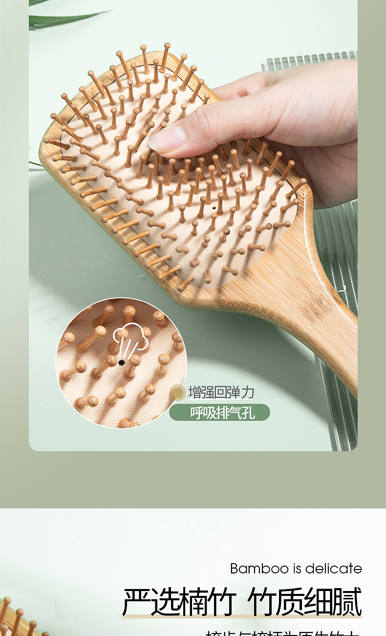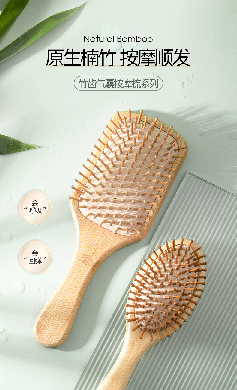 Peine Cuadrado de Bambú con Cojín de Aire, Masaje, Regalo OEM