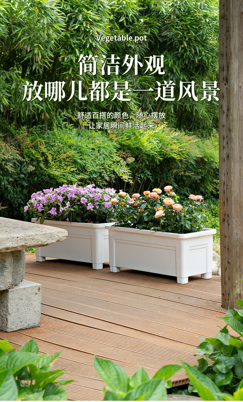 Maceta Rectangular Autoabsorbente para Balcón y Jardín, Plástico Multifuncional