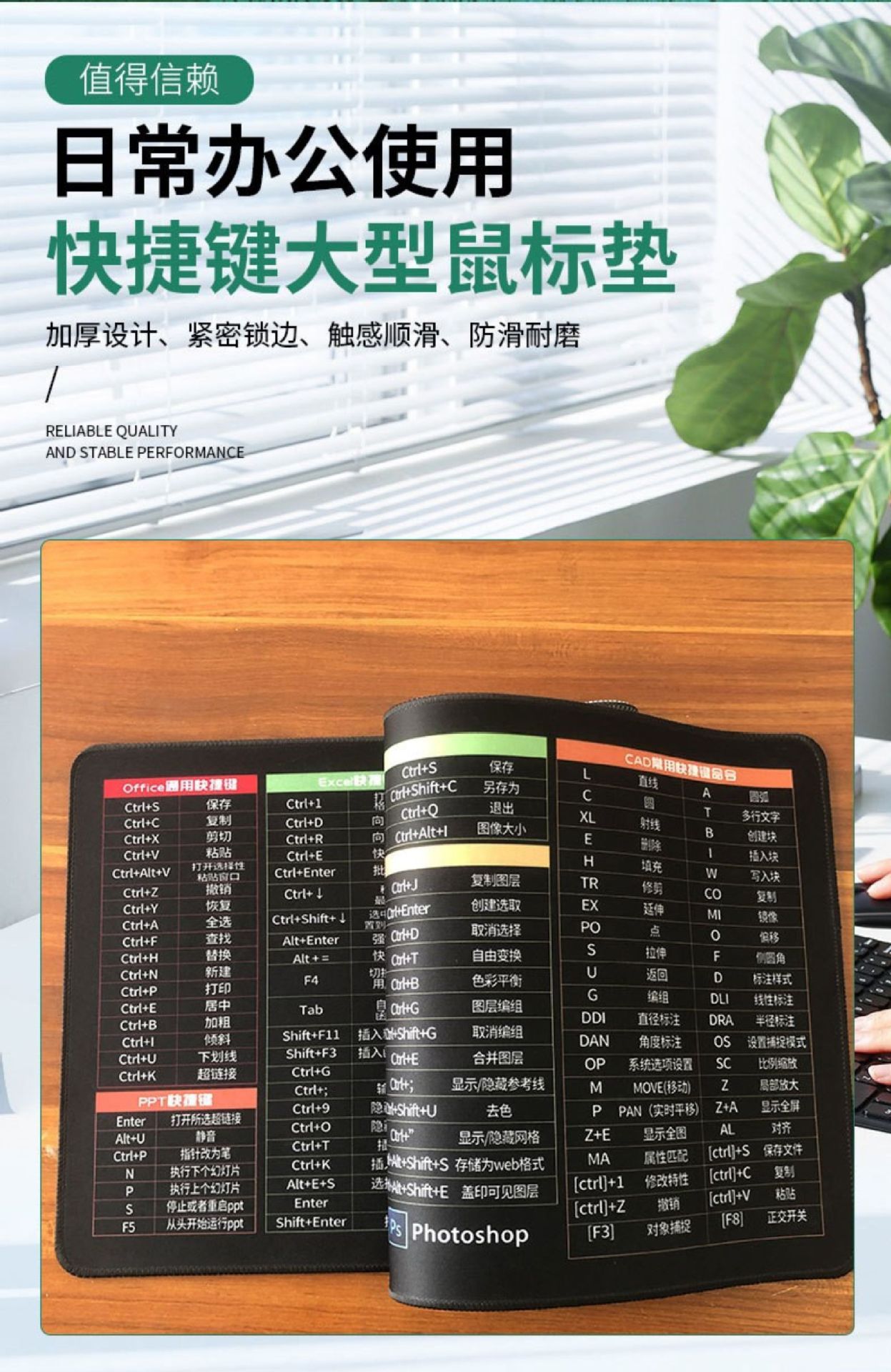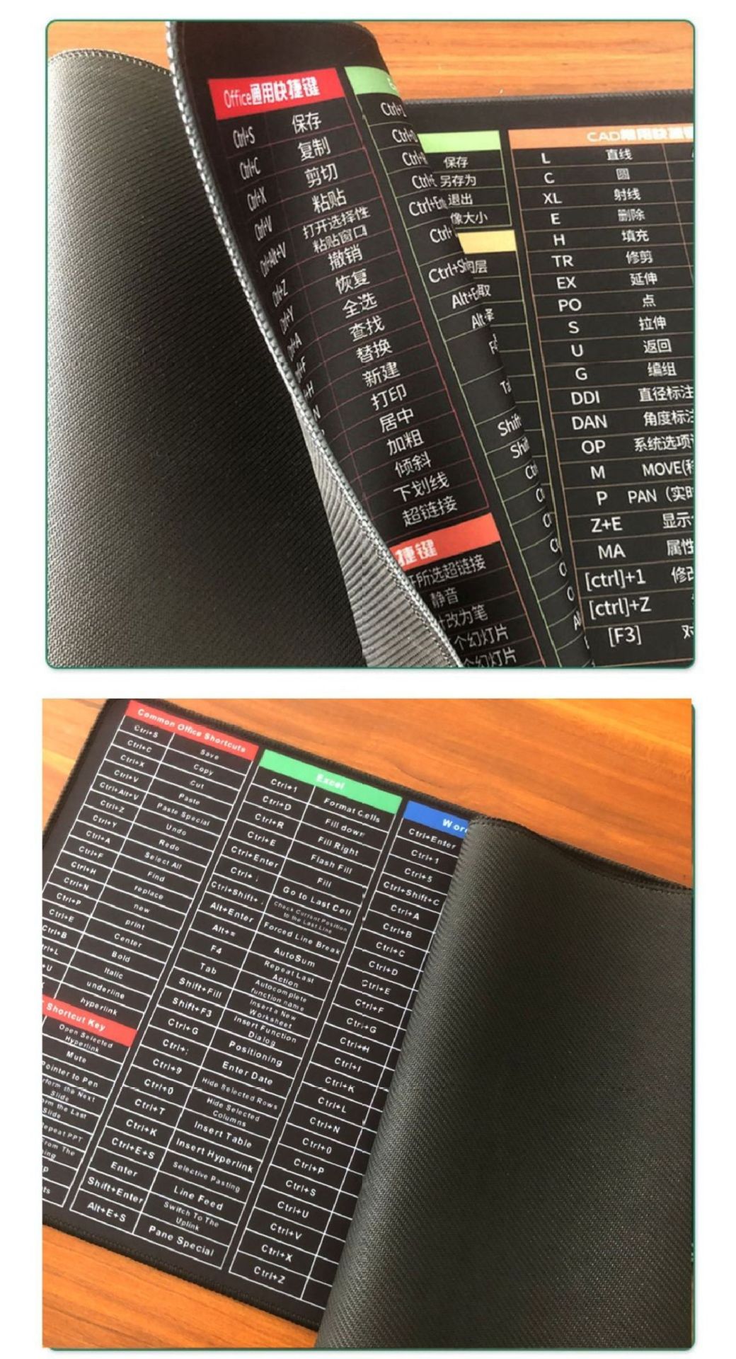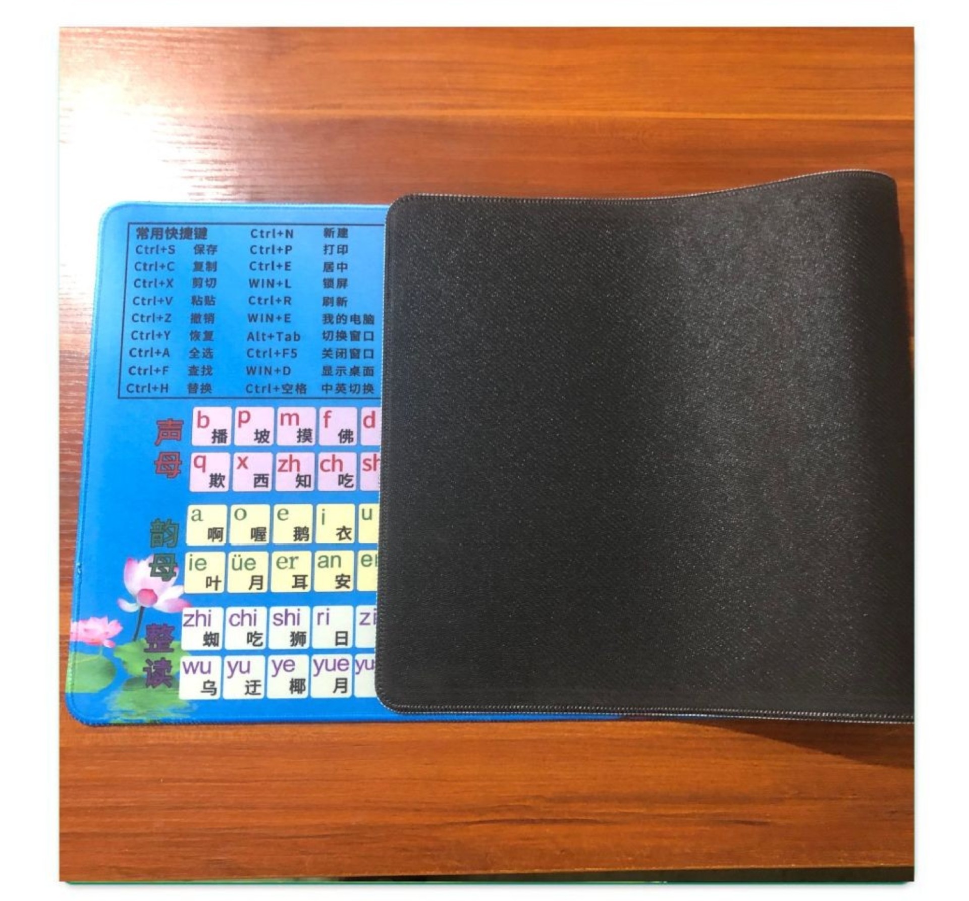 Alfombrilla de ratón personalizada para comercio electrónico, con bordes cosidos, diseño de dibujos animados coloridos, tamaño grande, gruesa, alfombrilla de escritorio con teclas de acceso rápido de dibujos animados.