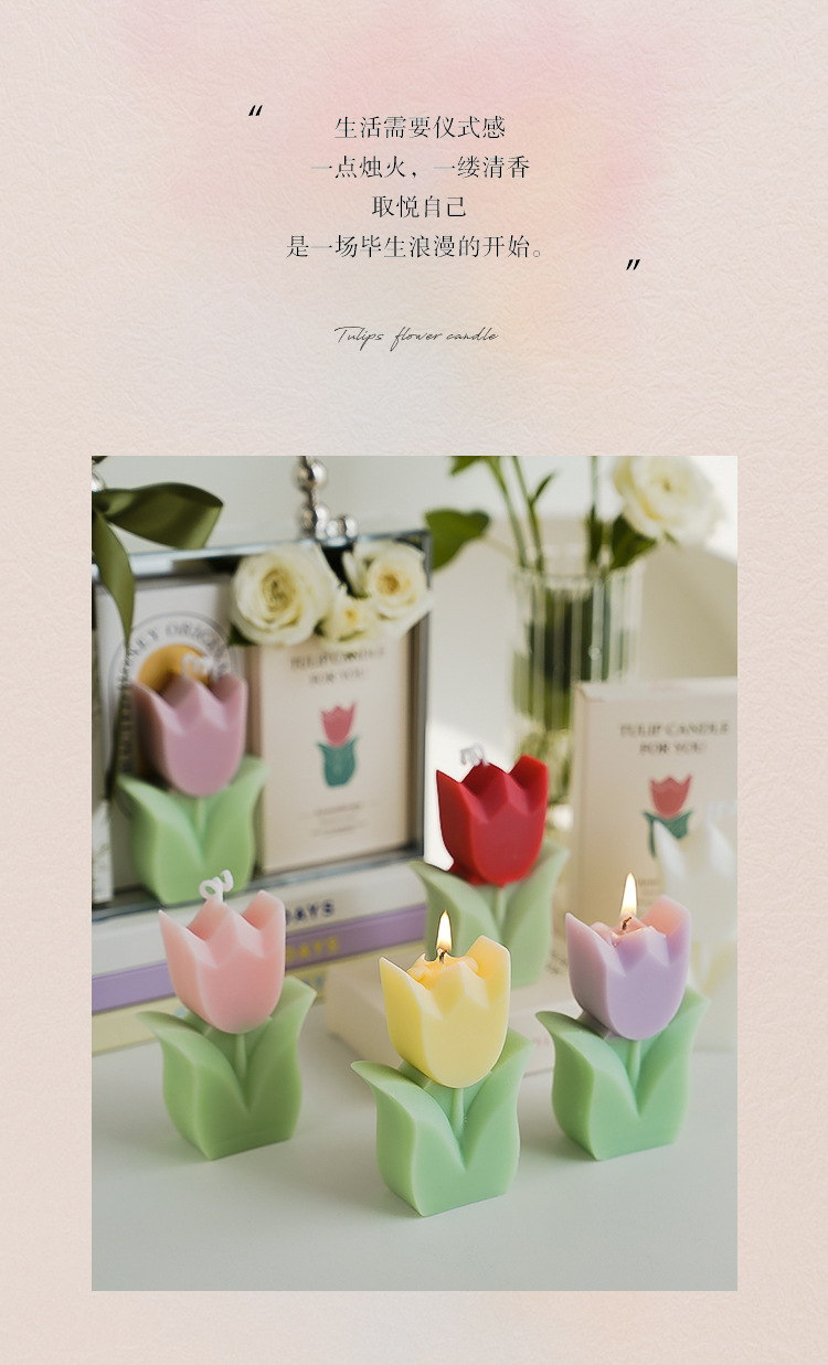 Vela Aromática de Tulipán Hecha a Mano, Regalo para Día del Maestro, Forma de Flor, Al por Mayor