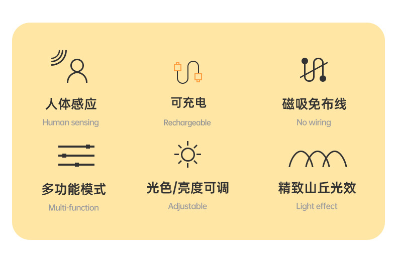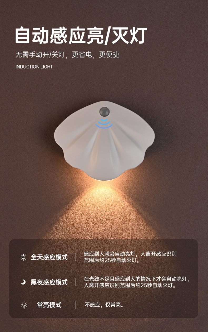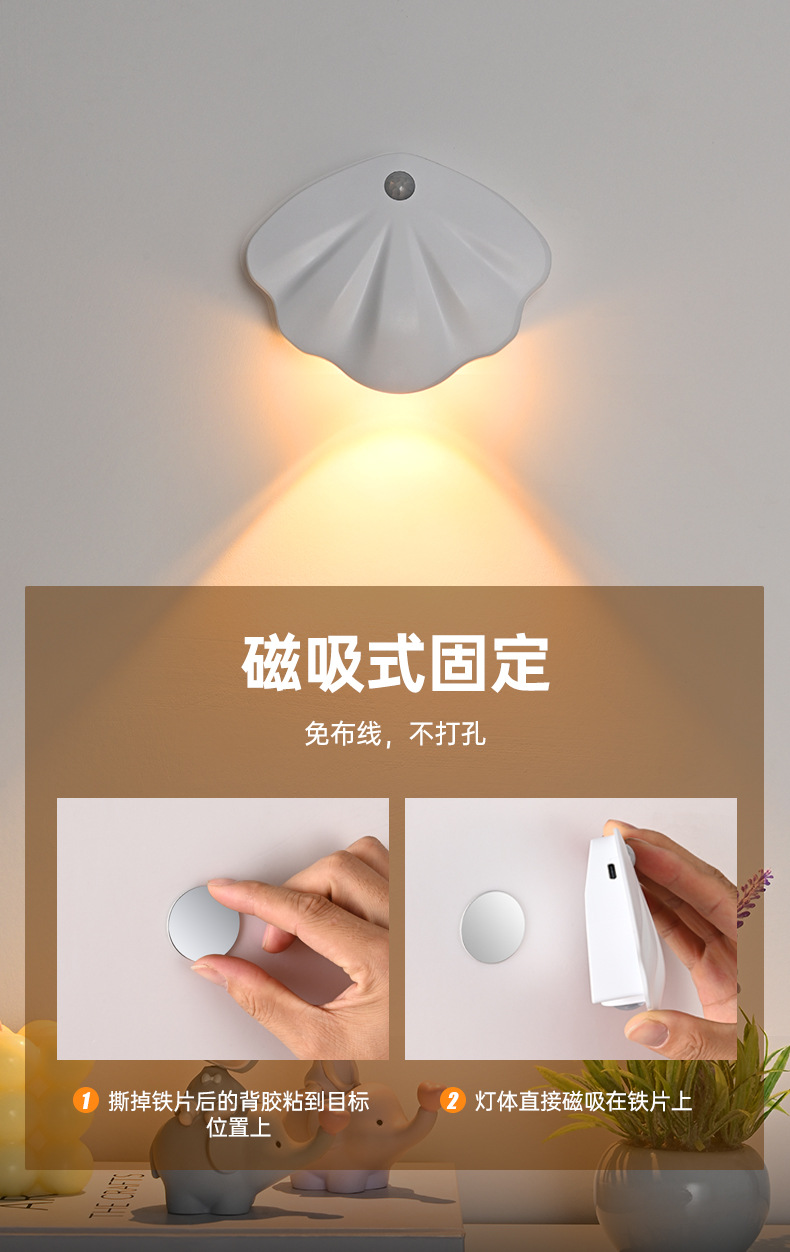 Luz de Pared Inteligente con Sensor de Movimiento, Sin Cableado, Luz Nocturna Interior, Libre de Succión