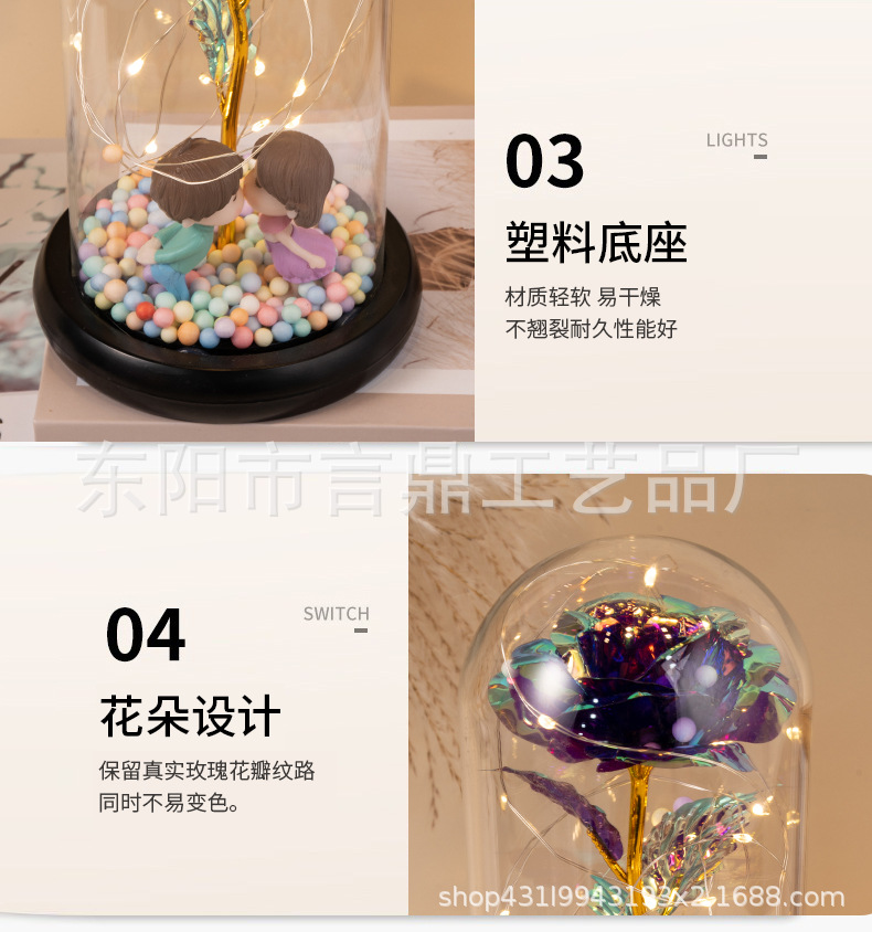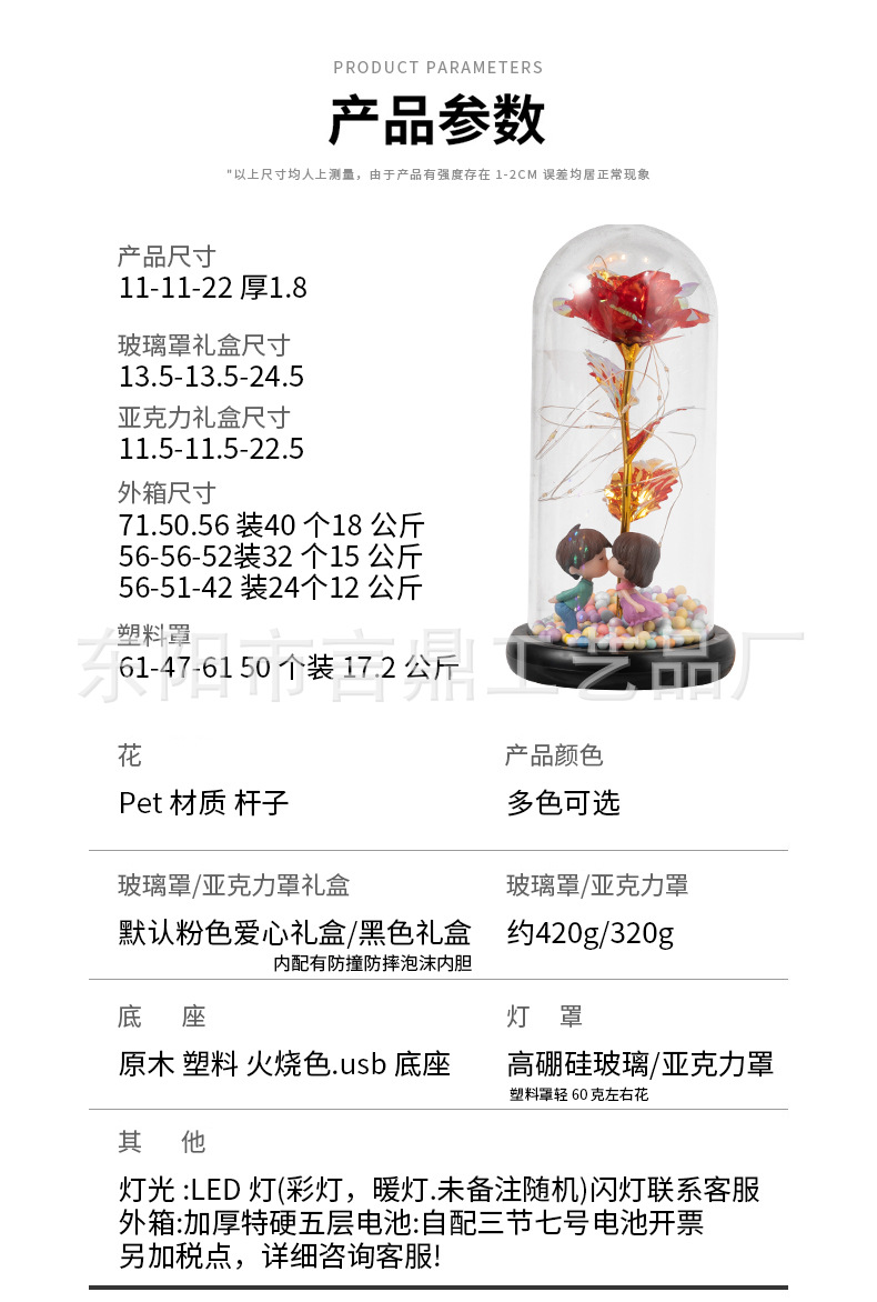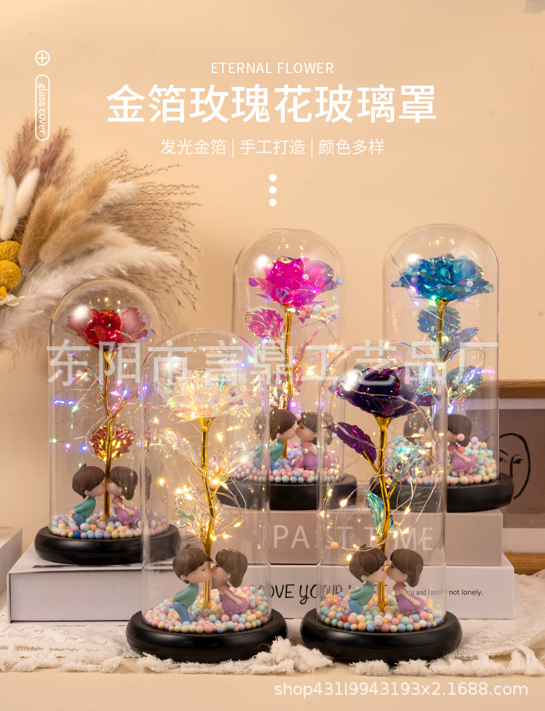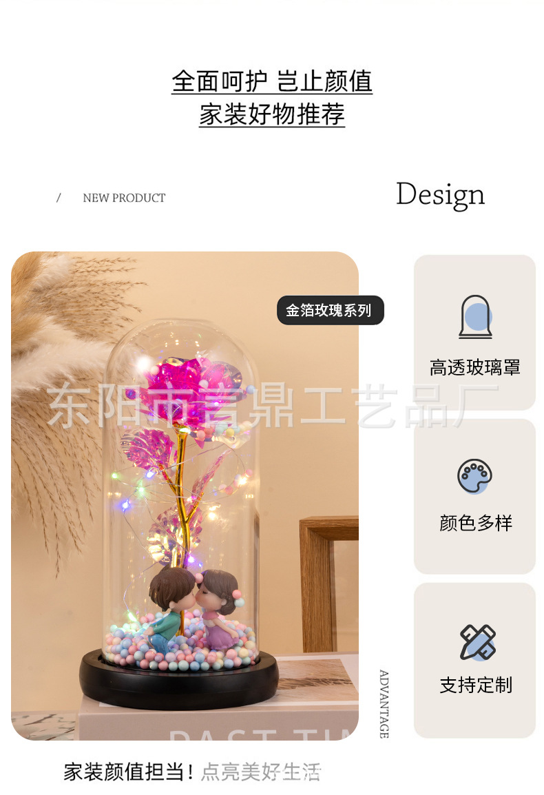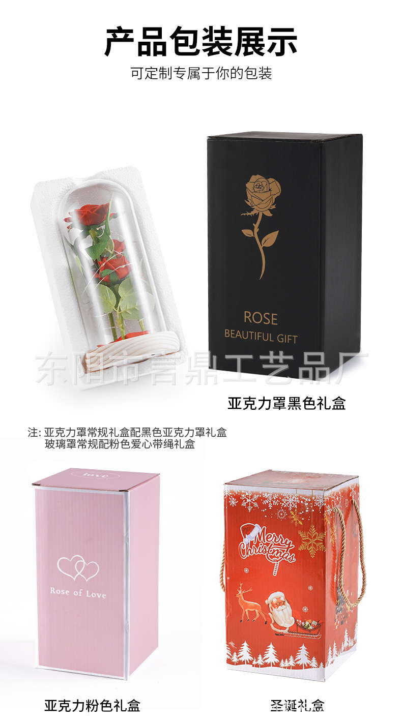 Cubierta de vidrio Base de plástico negro Lámpara de color Linterna de espuma Caja de regalo de amor rosa