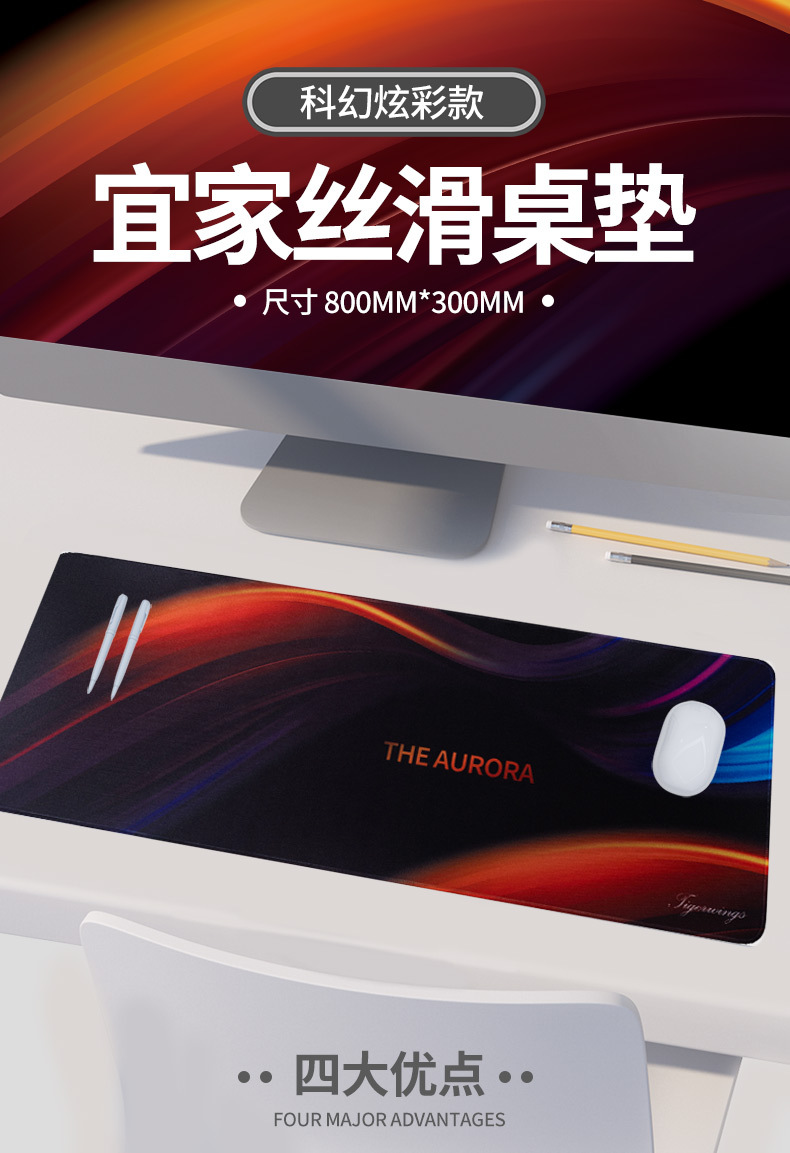 Alfombrilla gaming grande estilo ciencia ficción con borde cosido