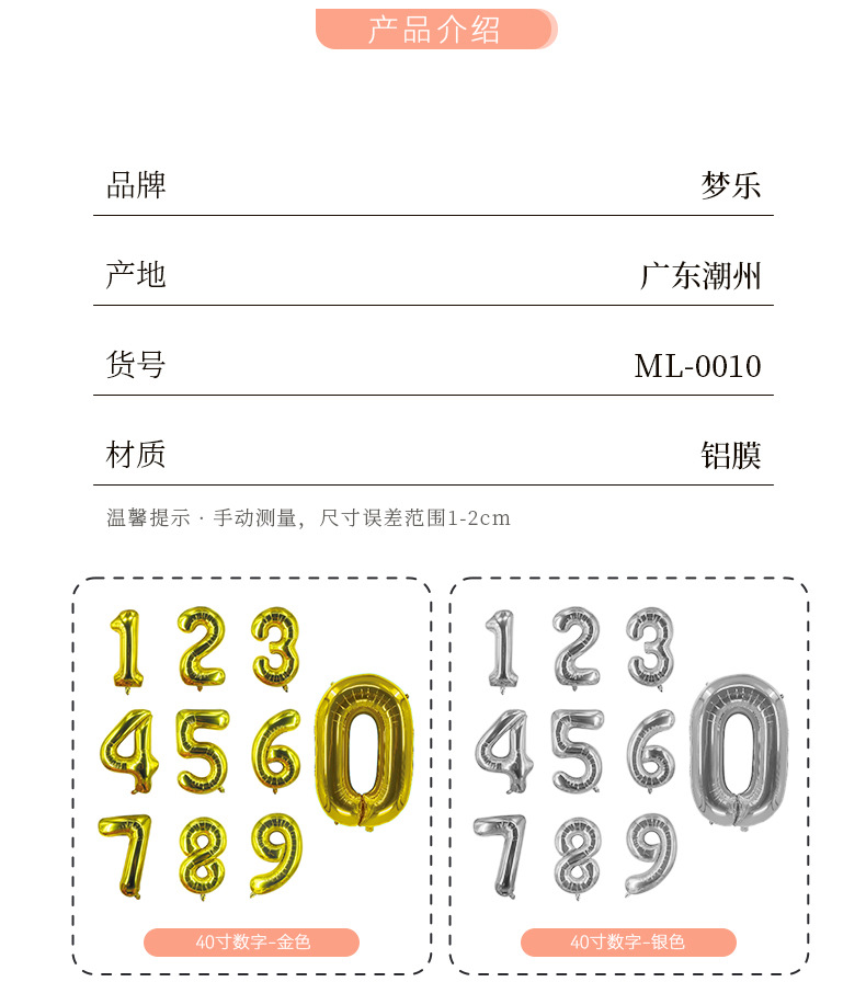 Globos de aluminio de 40 pulgadas con números 0–9 para fiestas