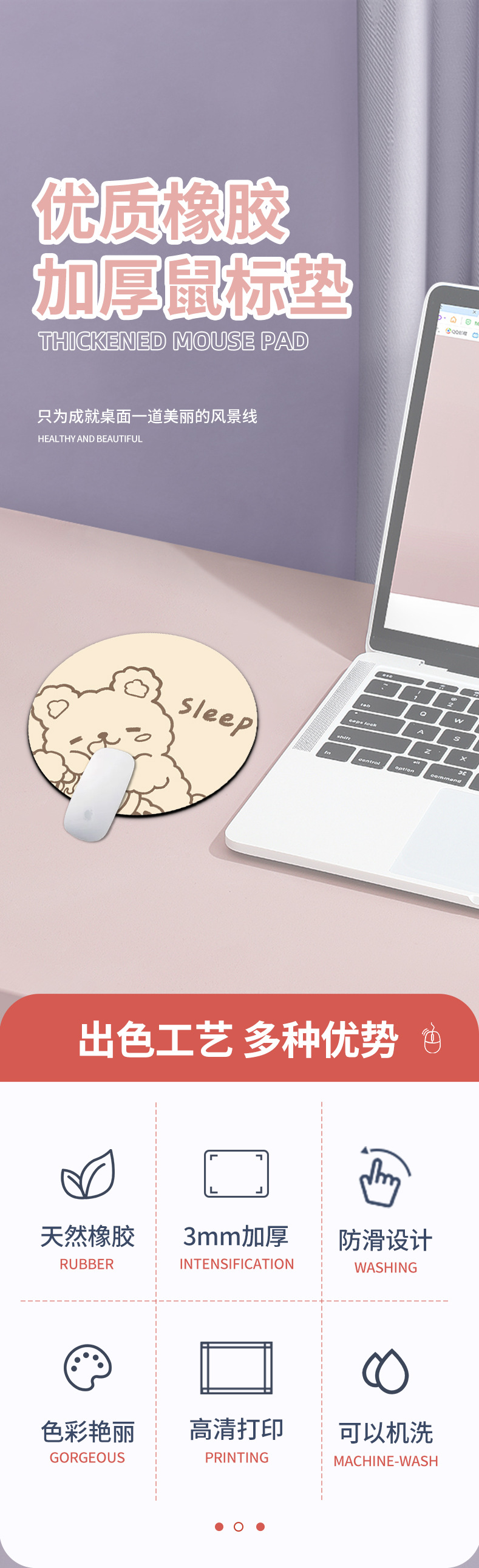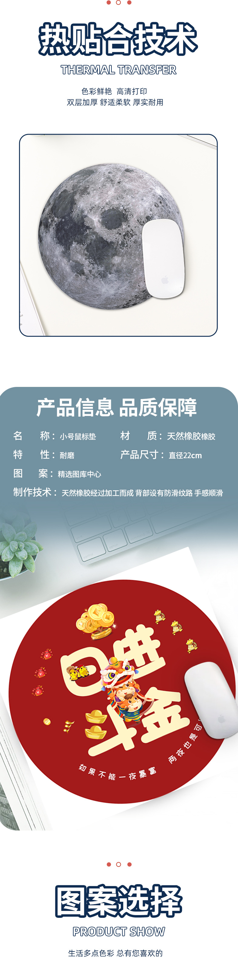 Alfombrilla de ratón redonda, pequeña y portátil, con antideslizante y soporte para muñeca