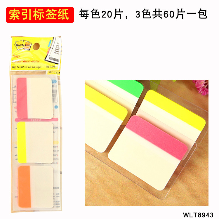 | Colores de la cubierta | 76*76Mm cuadrado nota un paquete de un color 8803A,76*76Mm cuadrado nota un paquete de cuatro colores 8803,8908 rectángulo pequeño 76*51mm,75*25mm tricolor un paquete 8893,75*19mm cuatro colores un paquete 8894,75*15mm cinco colores un paquete 8894,Un paquete de notas rectangulares de 100*76mm monocromo WLT8802A,Un paquete de notas rectangulares de 100*76mm 4 colores WLT8802,Índice PP etiquetas de plástico WLT8943,10 Etiquetas de clasificación digital WLT8937,26 letras etiquetas de categoría WLT8936,Un paquete de 100 hojas 8921,Un paquete de 140 hojas en forma de flecha 8919,Forma plana un paquete de 140 hojas de siete colores 8920,Un paquete de 100 hojas 8922,SEÑAL--WLT8940 Inglés-100 hojas,Recordatorio de etiquetas de flecha 7010 180 hojas,Marca etiqueta de cinco colores 8961 * un paquete,Marca etiqueta de cinco colores 8933 * un paquete,Paquete plano de cinco colores 8888,7009-SIGH HERE,8962--SIGH HERE,8941 un paquete |