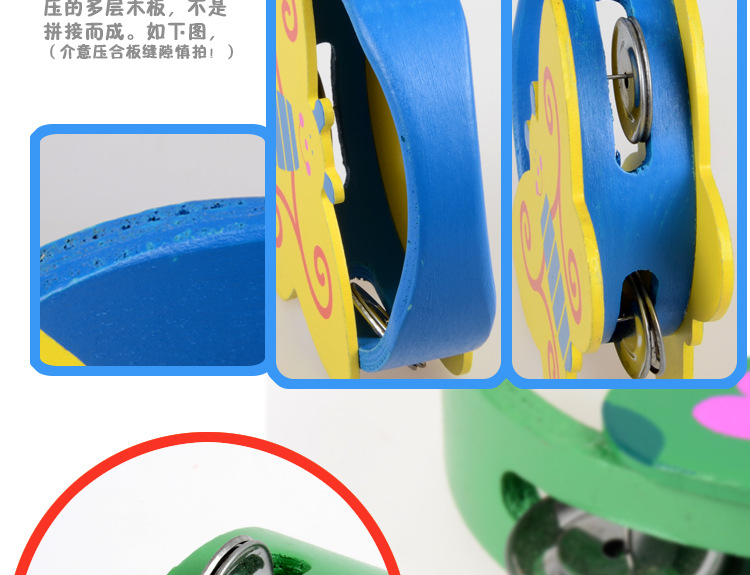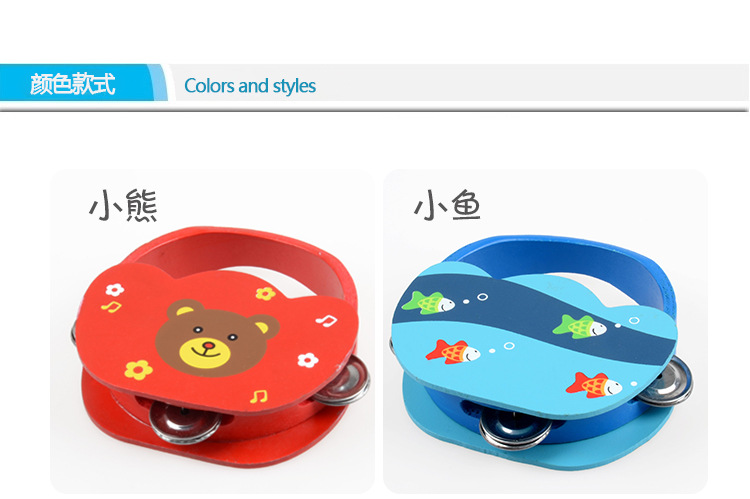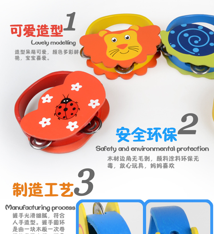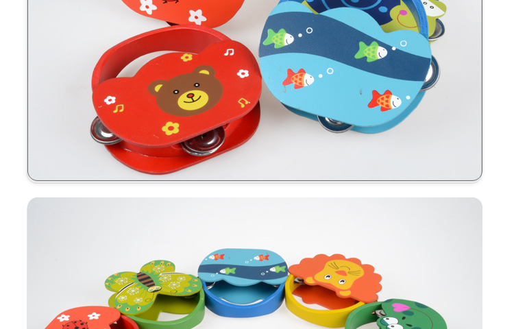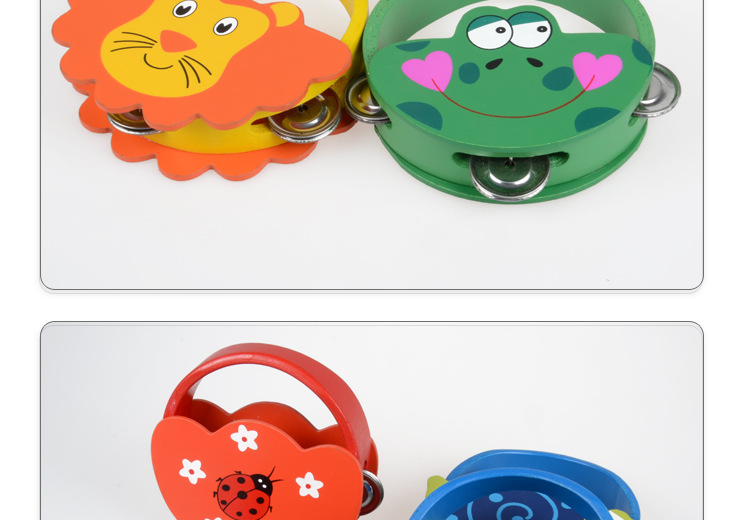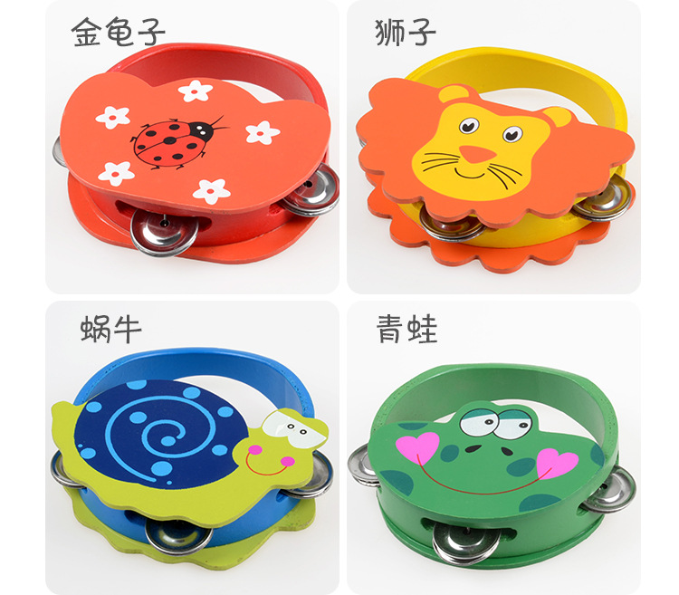 Bebé de madera Sonajeros dibujos animados animales de madera Tambores Orff Percusión Instrumentos Juguetes educación temprana