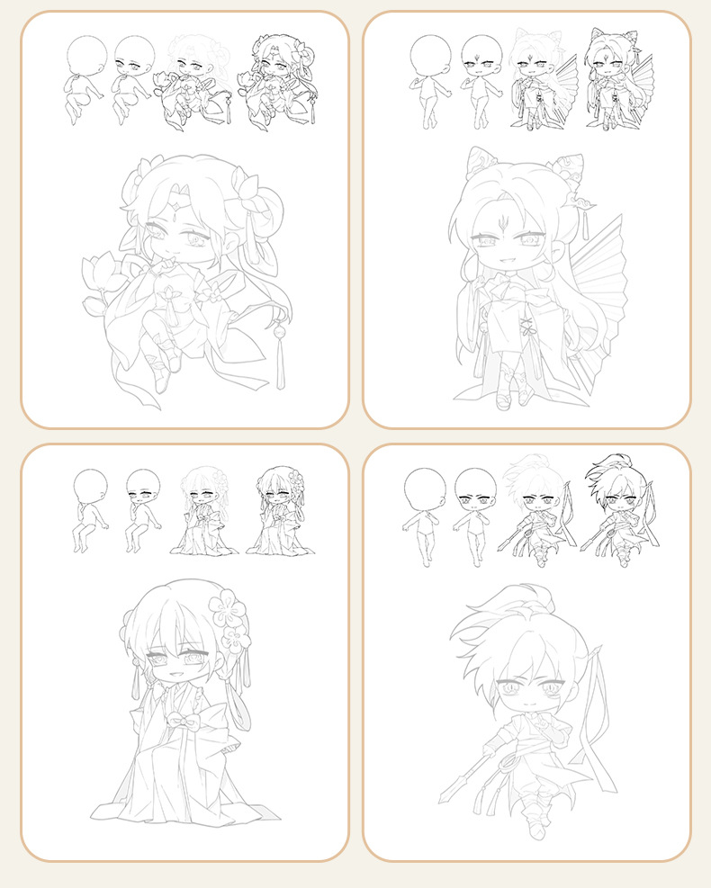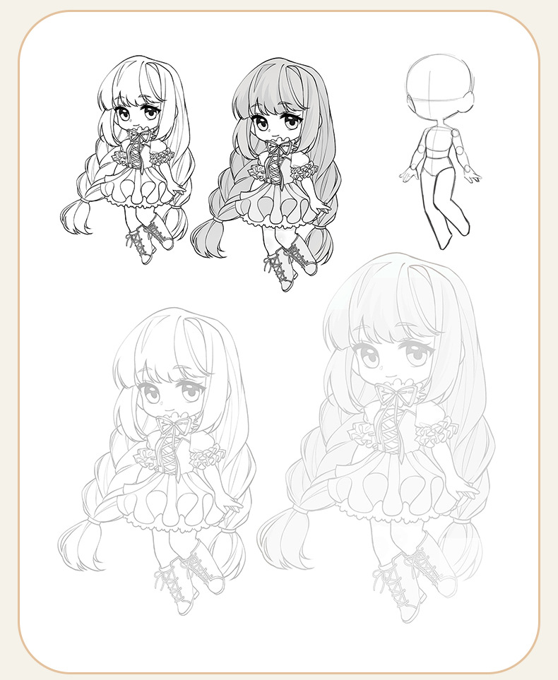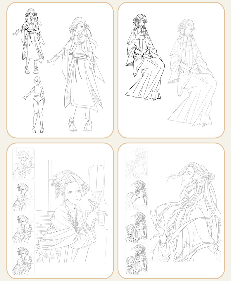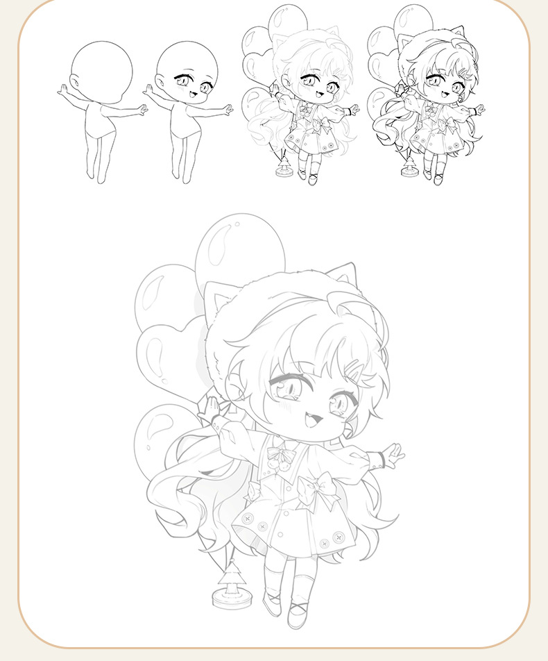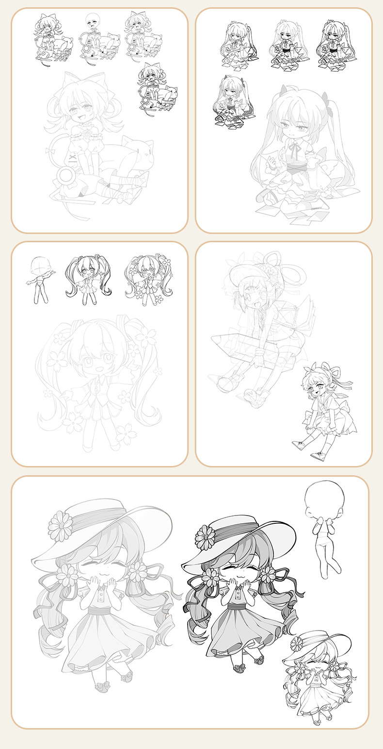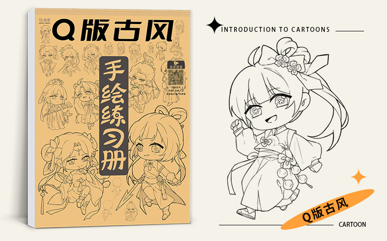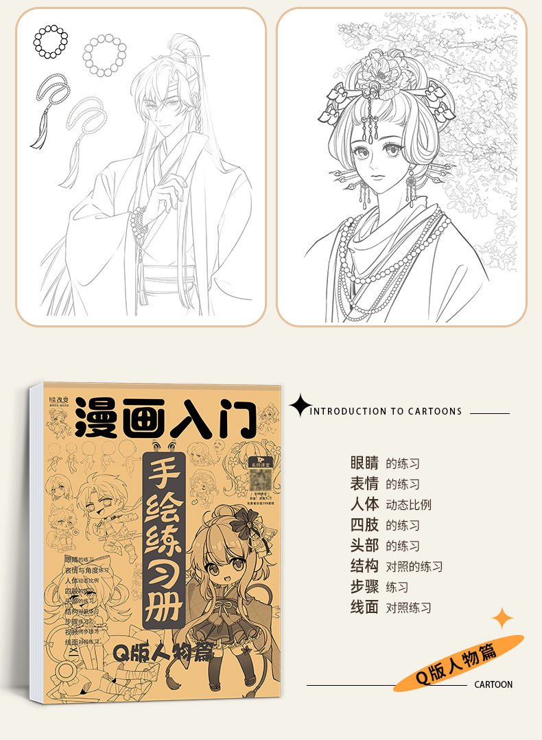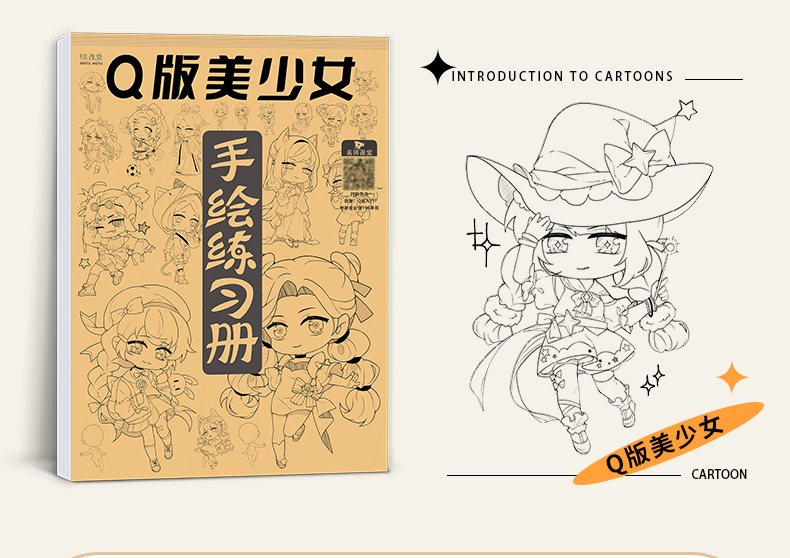 Introducción de dibujos animados libro de ejercicios pintado a mano libro de rastreo personaje de dibujos animados niña bonita versión Q técnicas de estilo antiguo dibujo de borrador de línea