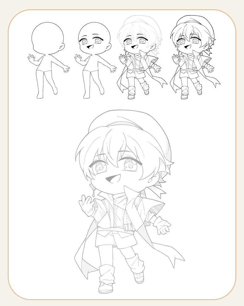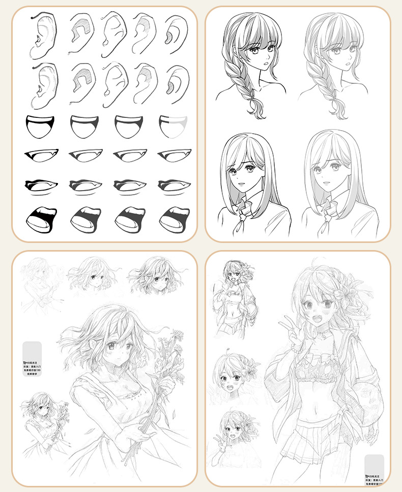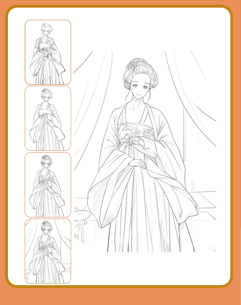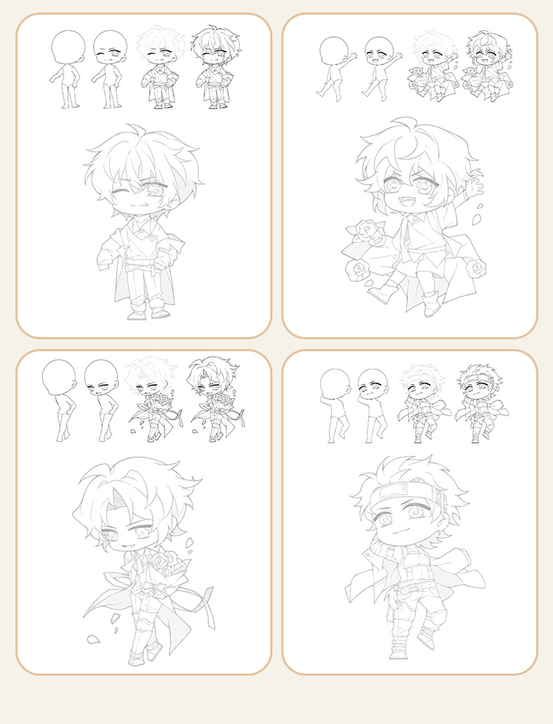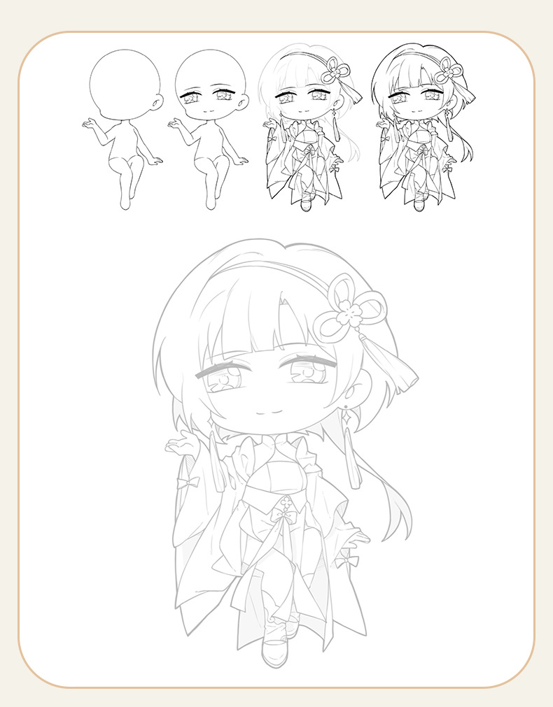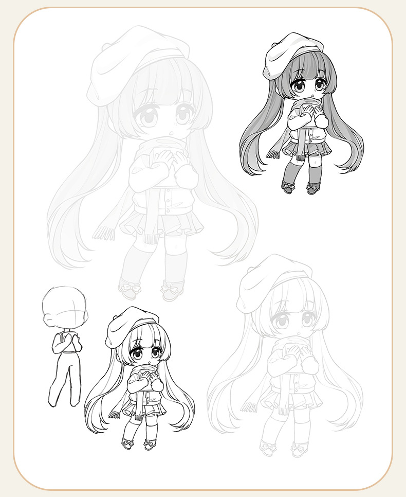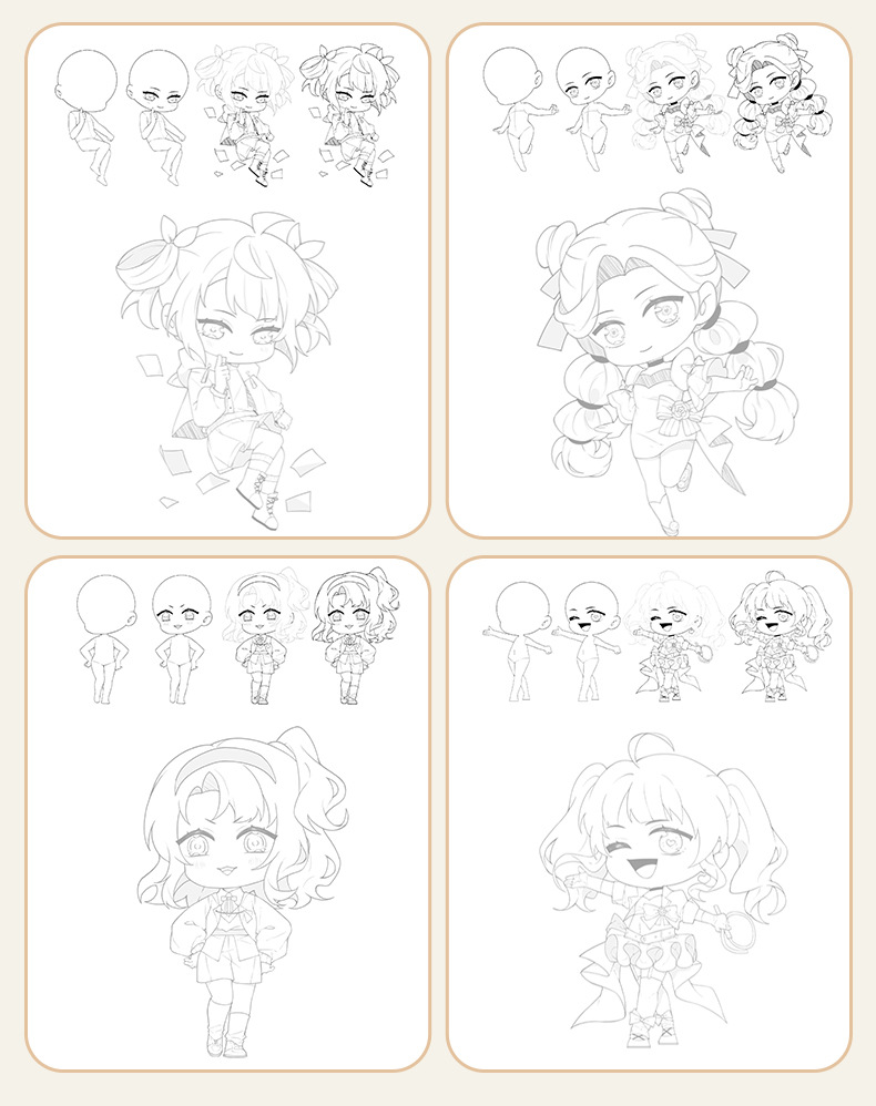 Introducción de dibujos animados libro de ejercicios pintado a mano libro de rastreo personaje de dibujos animados niña bonita versión Q técnicas de estilo antiguo dibujo de borrador de línea