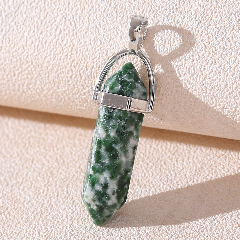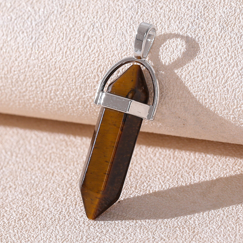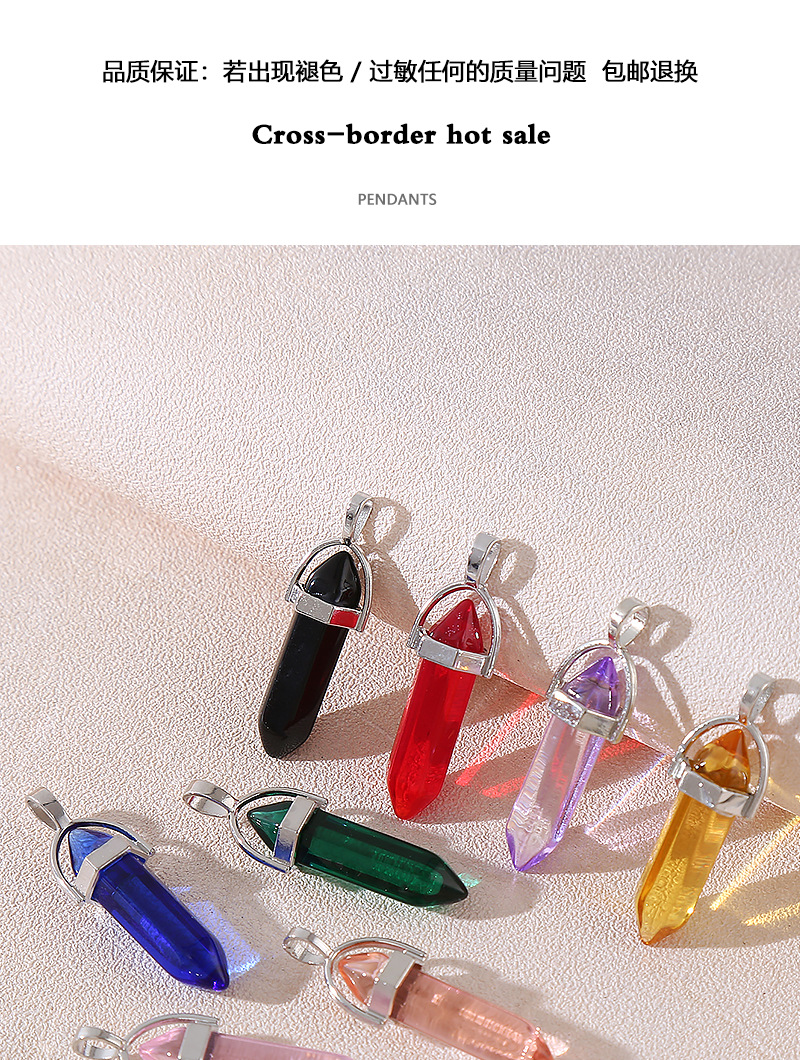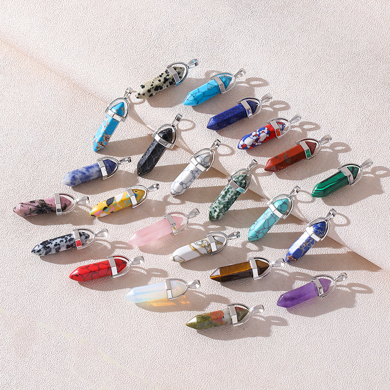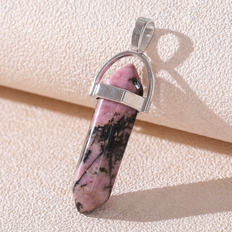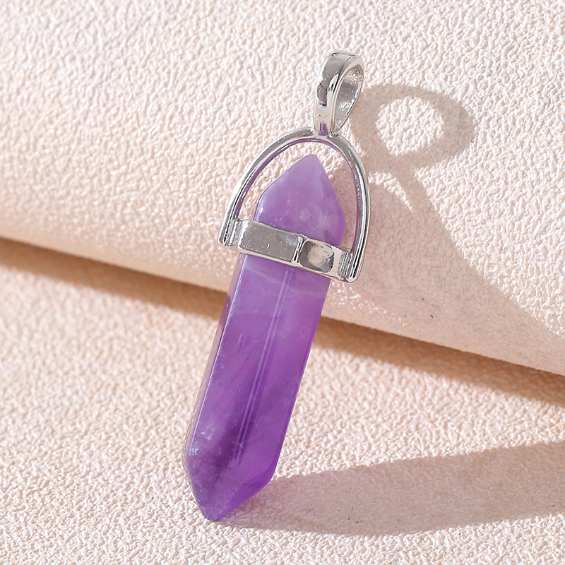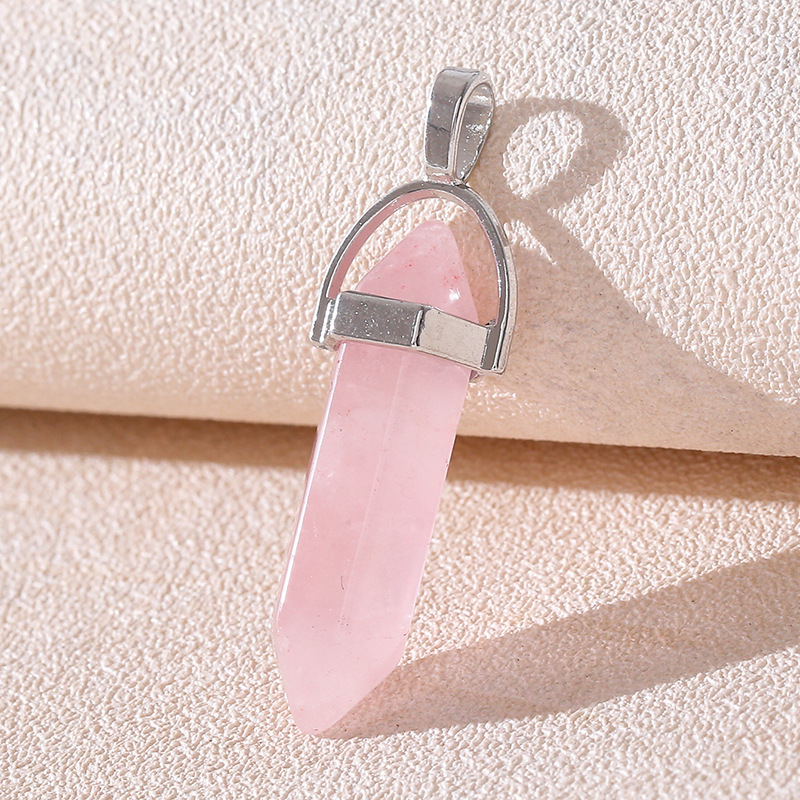 Venta caliente transfronteriza piedra natural amatista cristal rosa colgante de columna hexagonal collar de bala de doble punta colgante único al por mayor