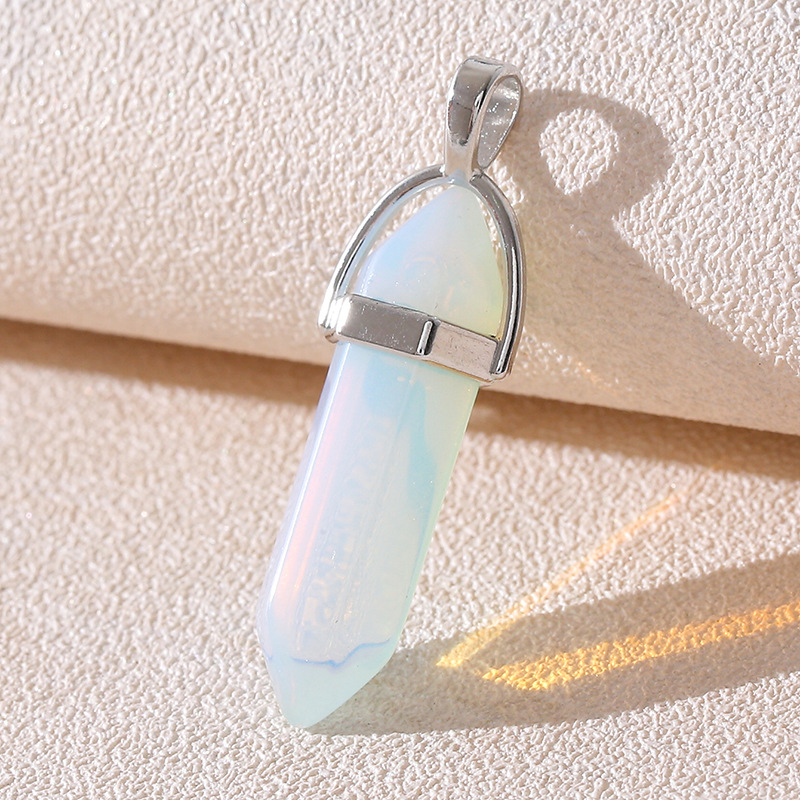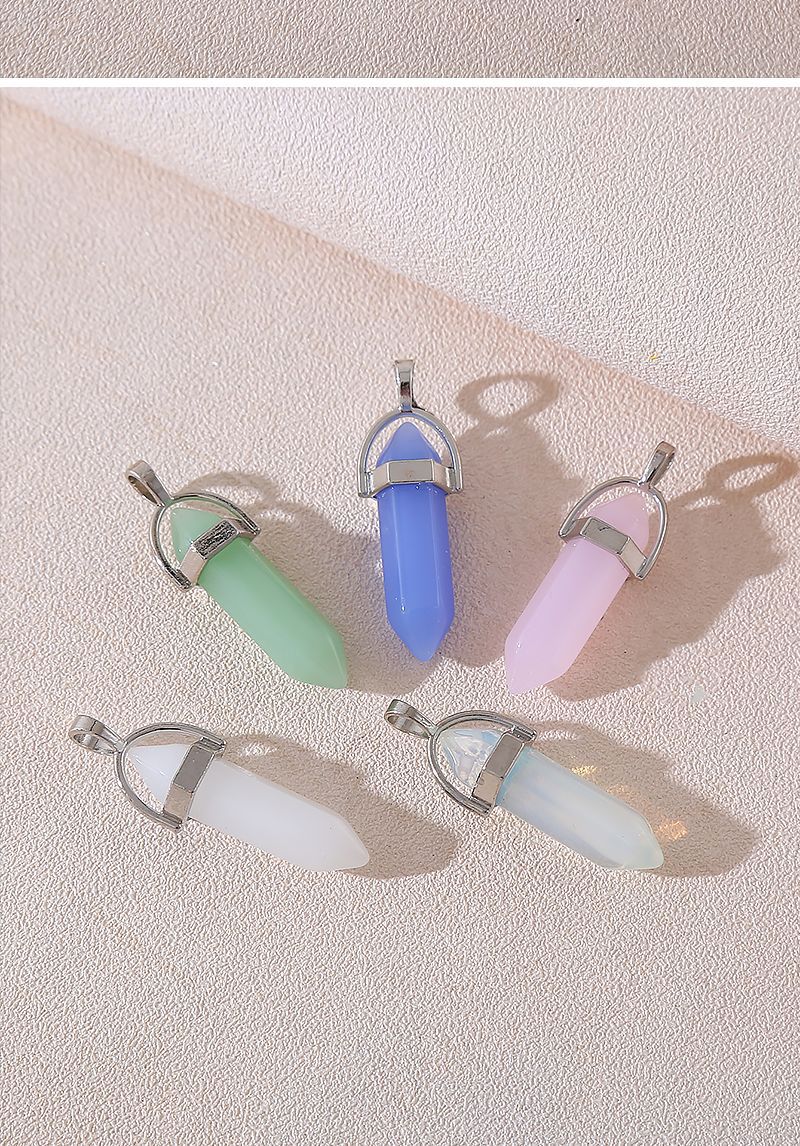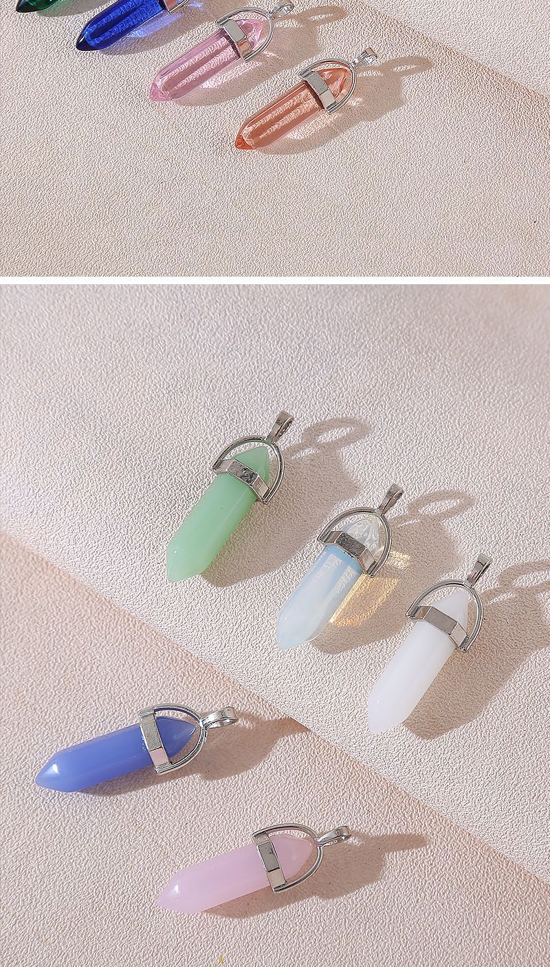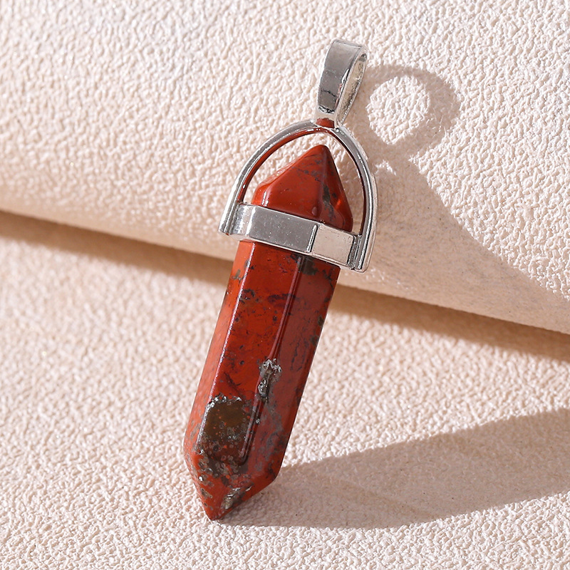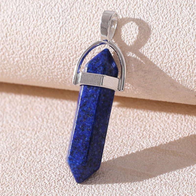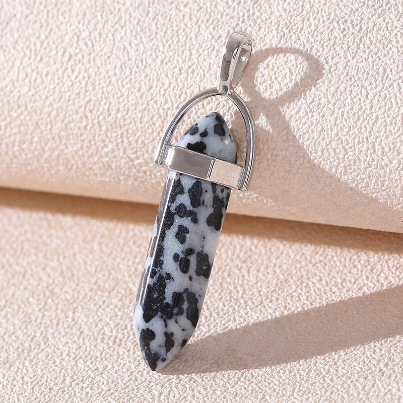 Venta caliente transfronteriza piedra natural amatista cristal rosa colgante de columna hexagonal collar de bala de doble punta colgante único al por mayor