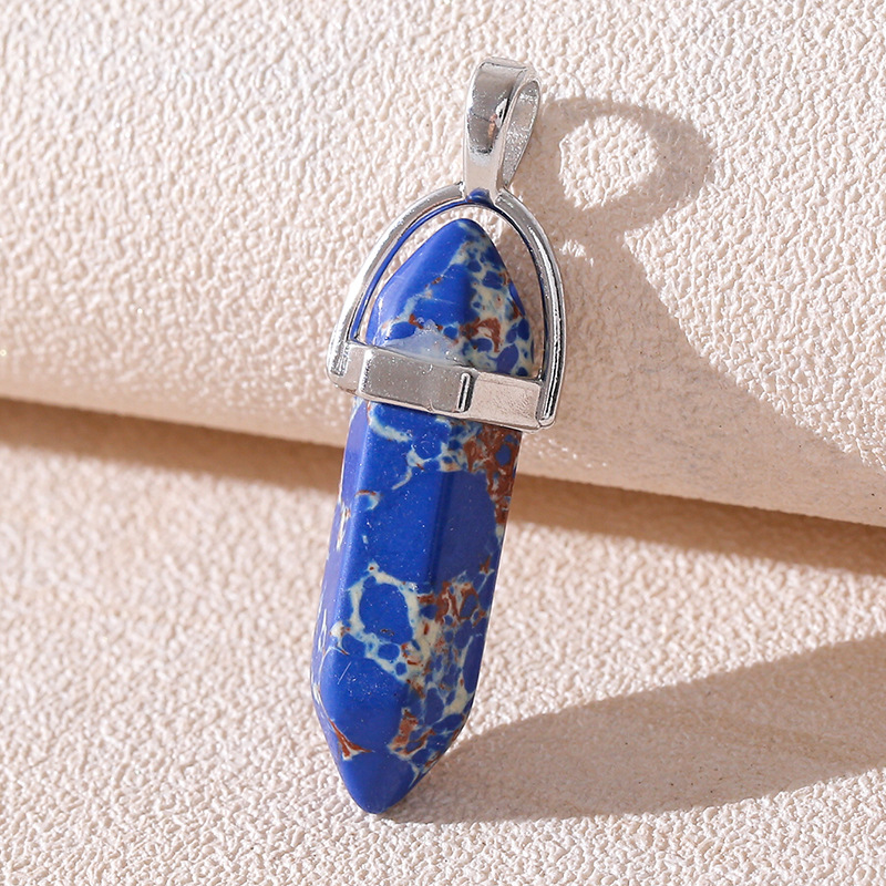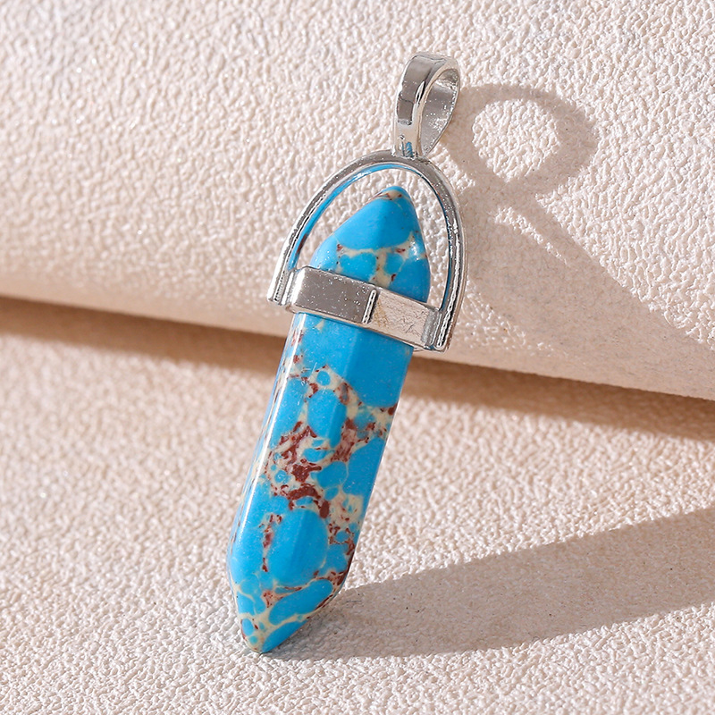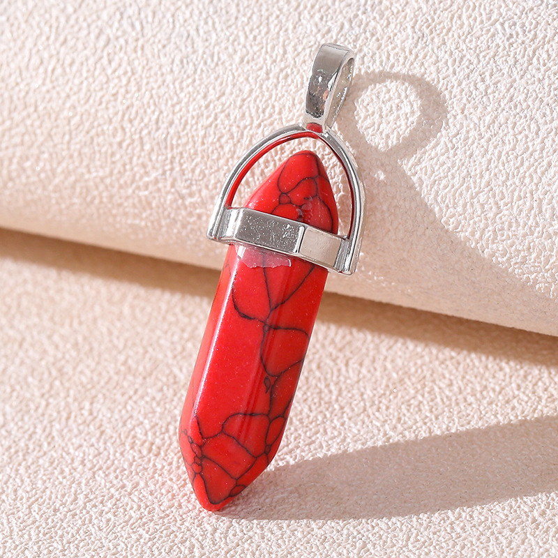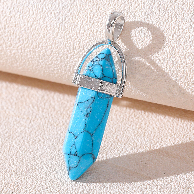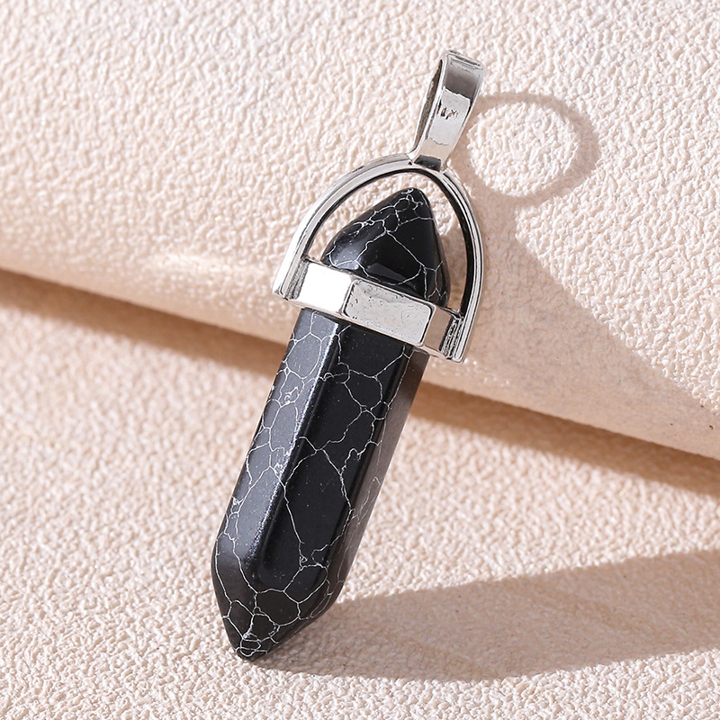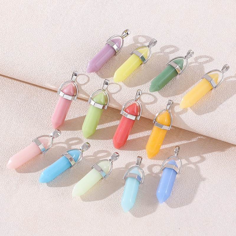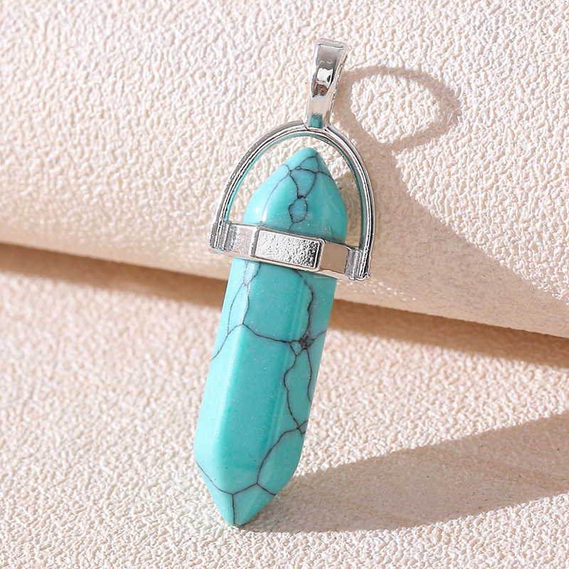 Venta caliente transfronteriza piedra natural amatista cristal rosa colgante de columna hexagonal collar de bala de doble punta colgante único al por mayor