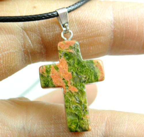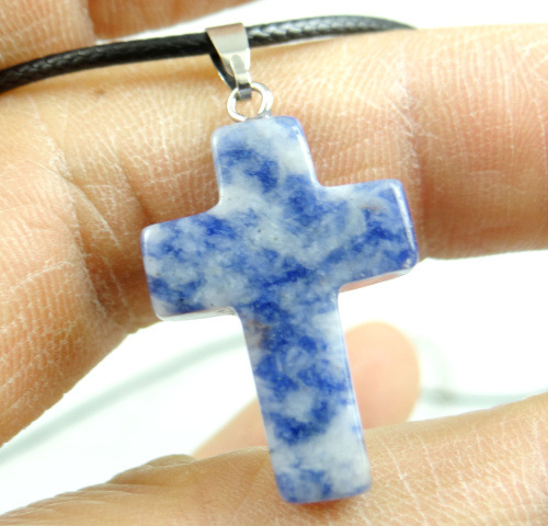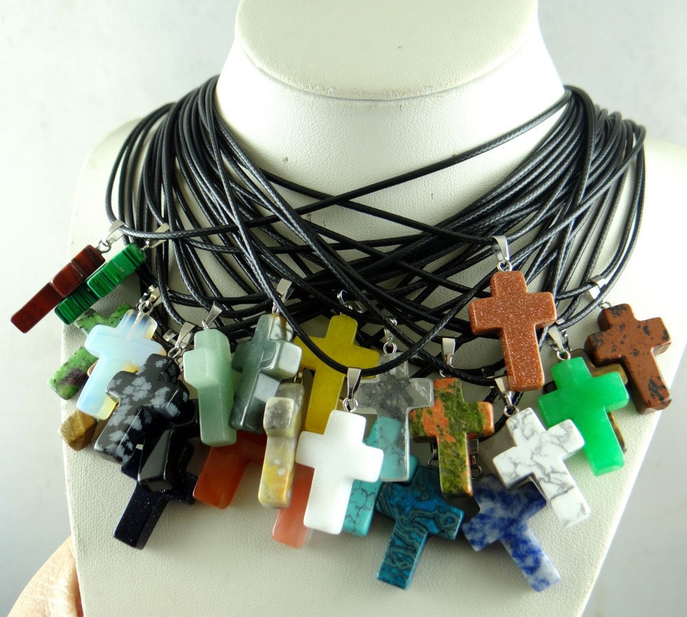 Comercio exterior caliente Piedra Natural Rosa cristal ágata piedra Cruz colgante collar accesorios DIY joyería que hace