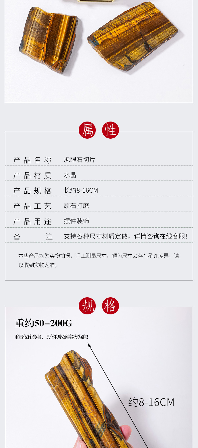 | Material | Ojo de Tigre rebanada de piedra |