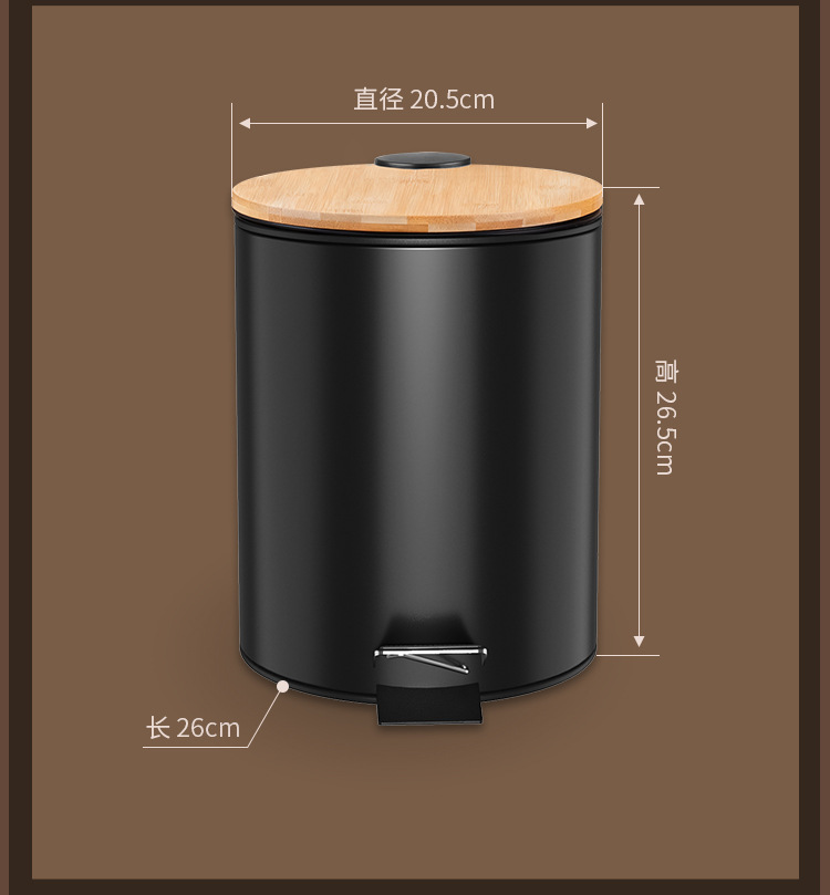 Negro mate redondo Flip basura hogar cocina salón tipo pedal Cubo de limpieza con tapa al por mayor Hotel