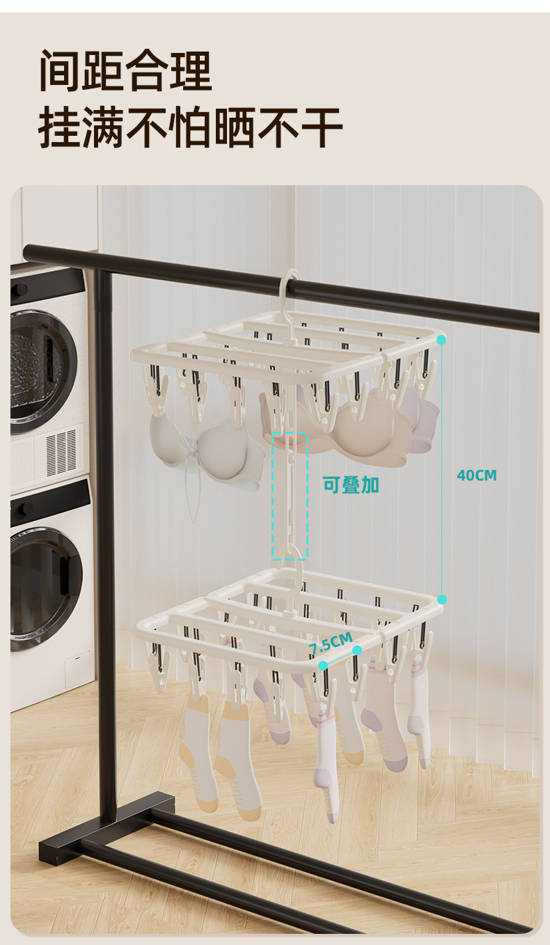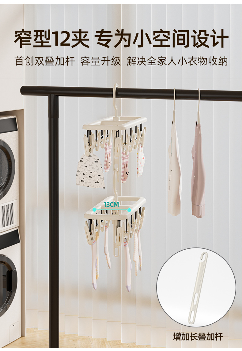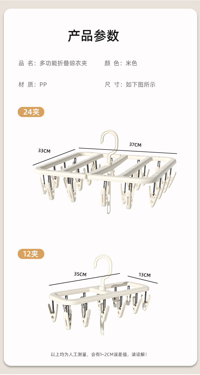 Seleccione estrictamente abrazadera de ropa plegable, abrazadera de ropa interior de color crema, abrazadera de ropa para bebés, abrazadera multifuncional doméstica