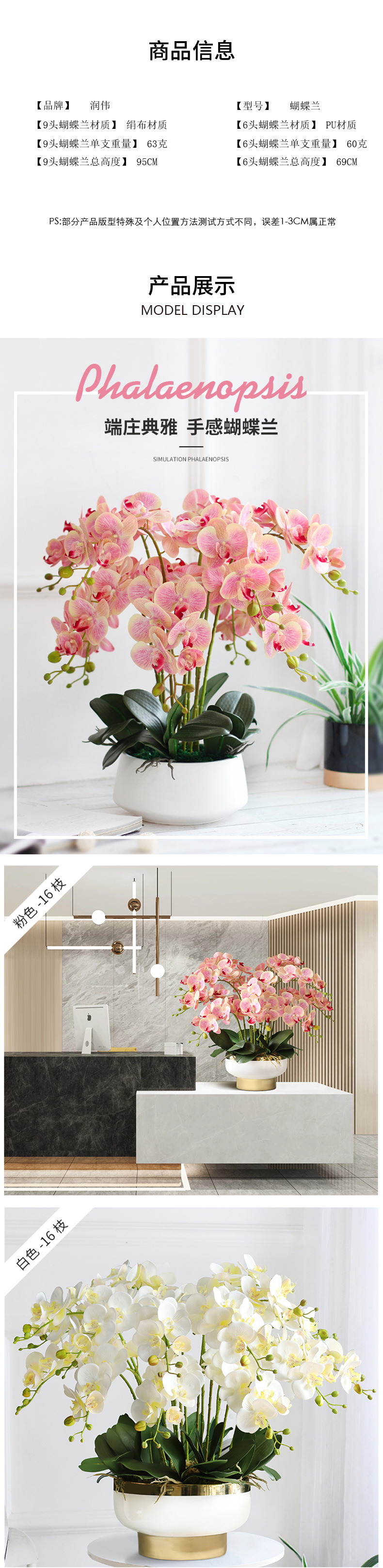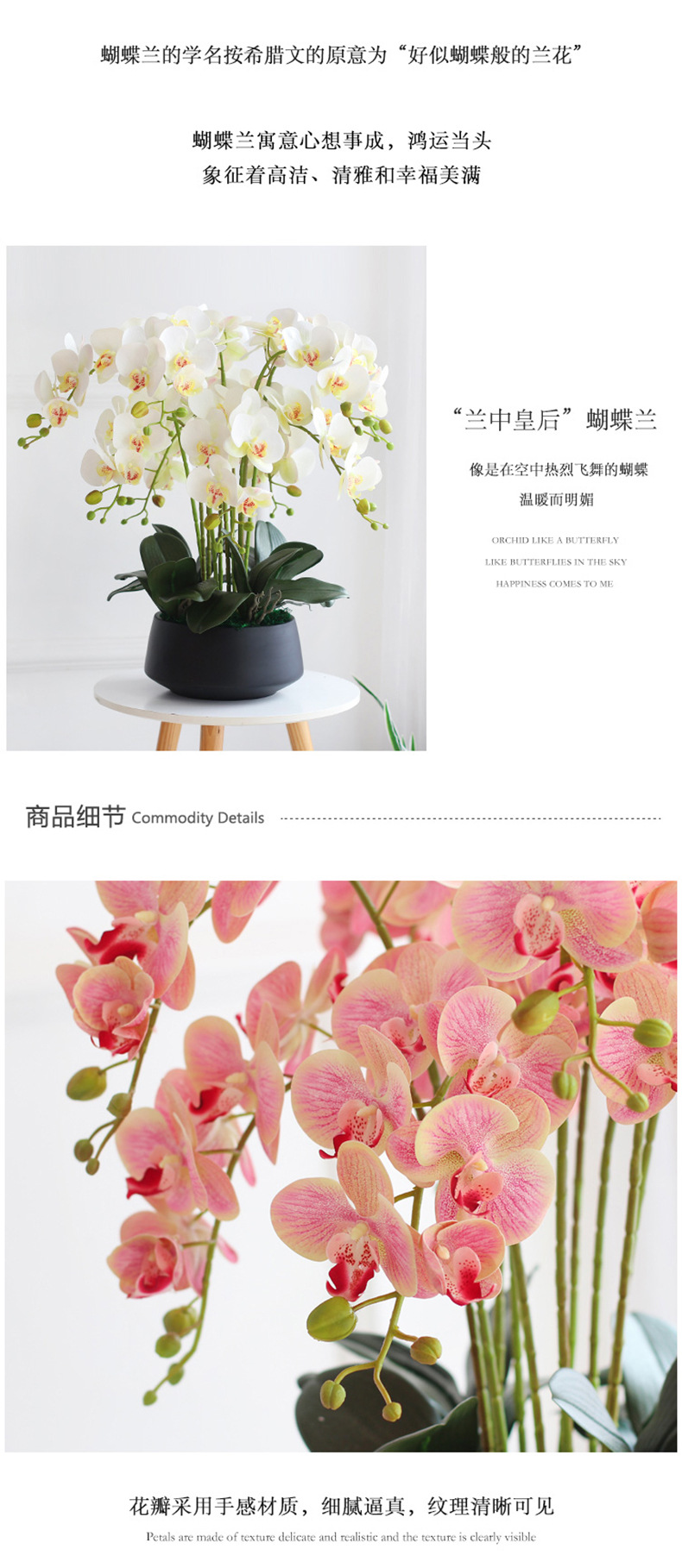 Phalaenopsis flor artificial sensación avanzada orquídea pantalla flor sala de estar mesa de comedor entrada decoración de la boda decoración floral