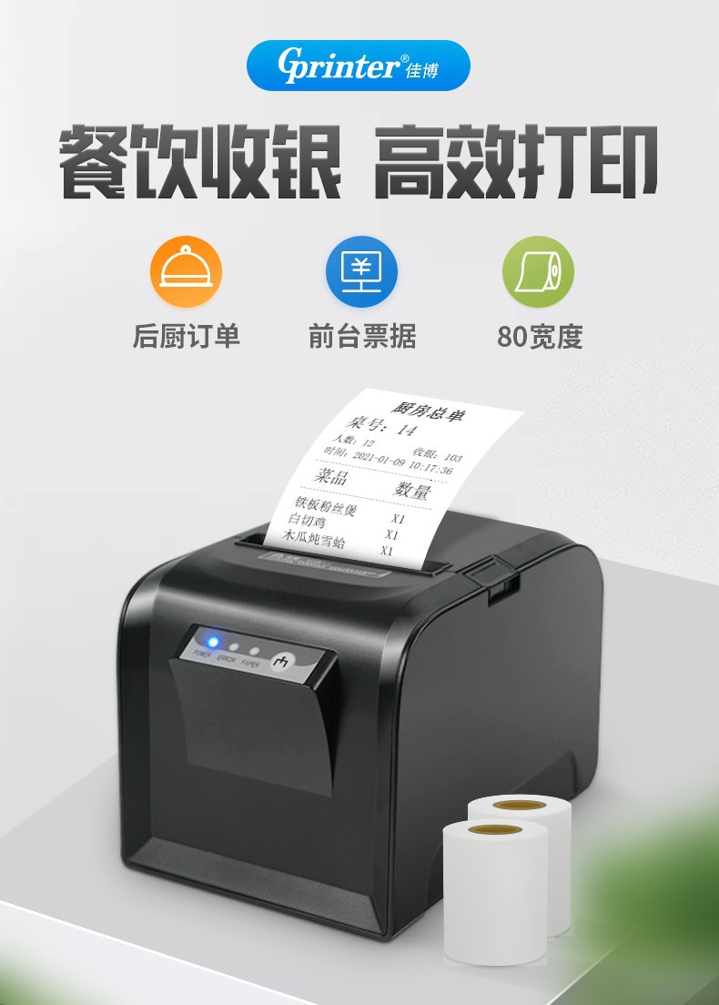 Jiabo GPL80180I impresora térmica cocina trasera comida para llevar Wi-Fi puerto de red cocina de hotel 80mm de ancho