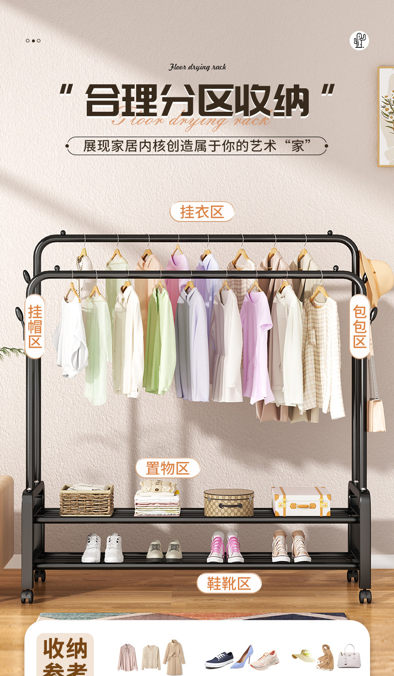 Tendedero de Ropa Plegable Móvil para Balcón y Dormitorio - Perchero de Pie para Hogar