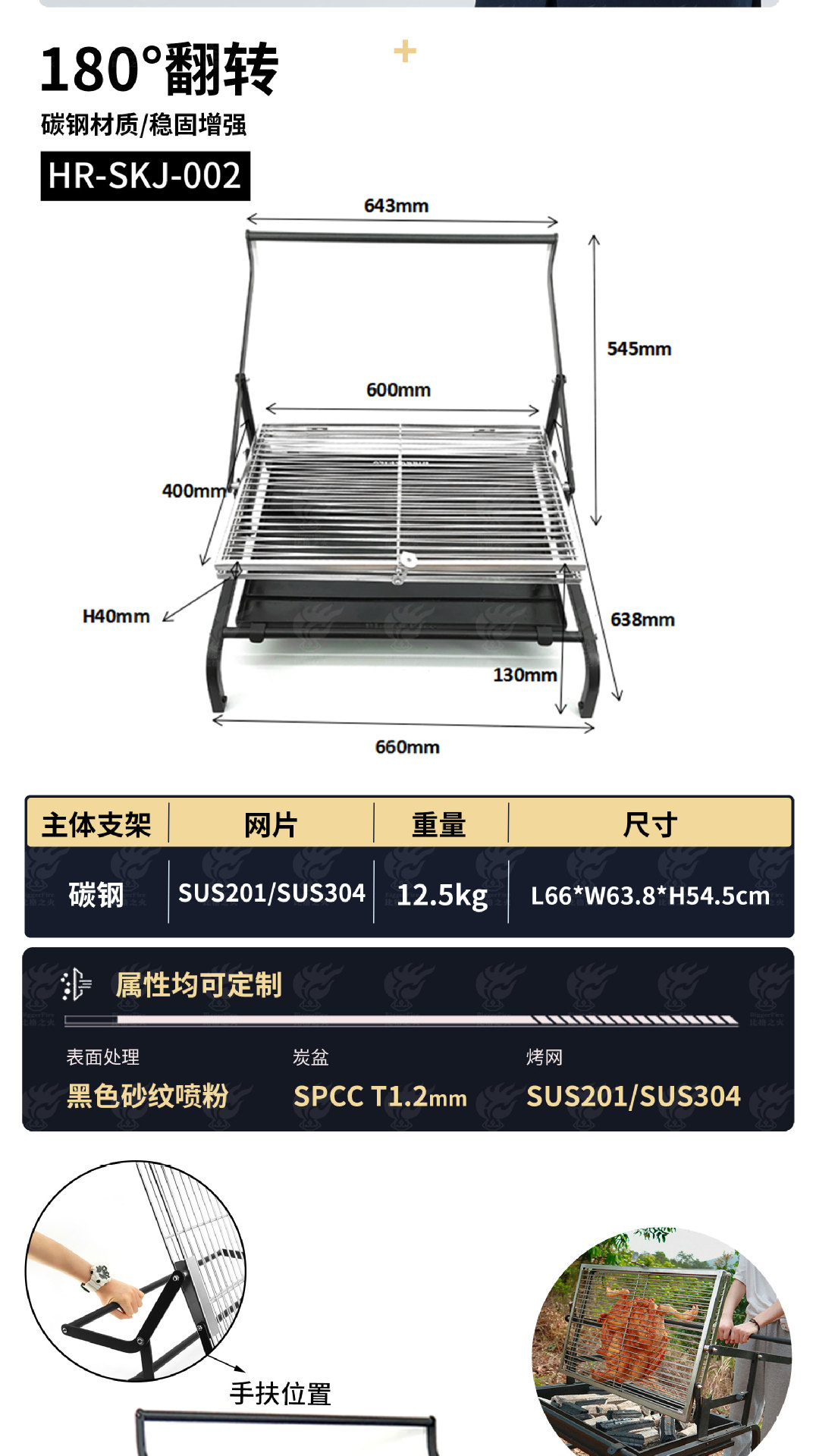 Parrilla de barbacoa al aire libre de venta directa de fábrica, barbacoa de barbacoa para acampar en el hogar, parrilla de patio al aire libre europea y americana reversible