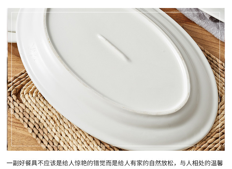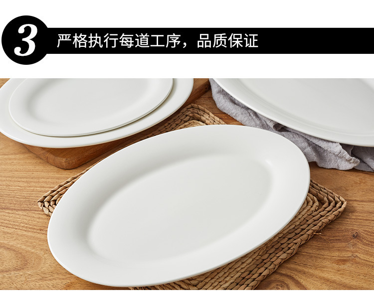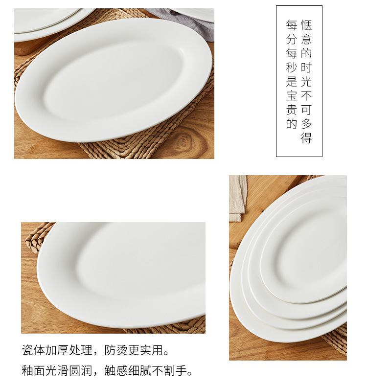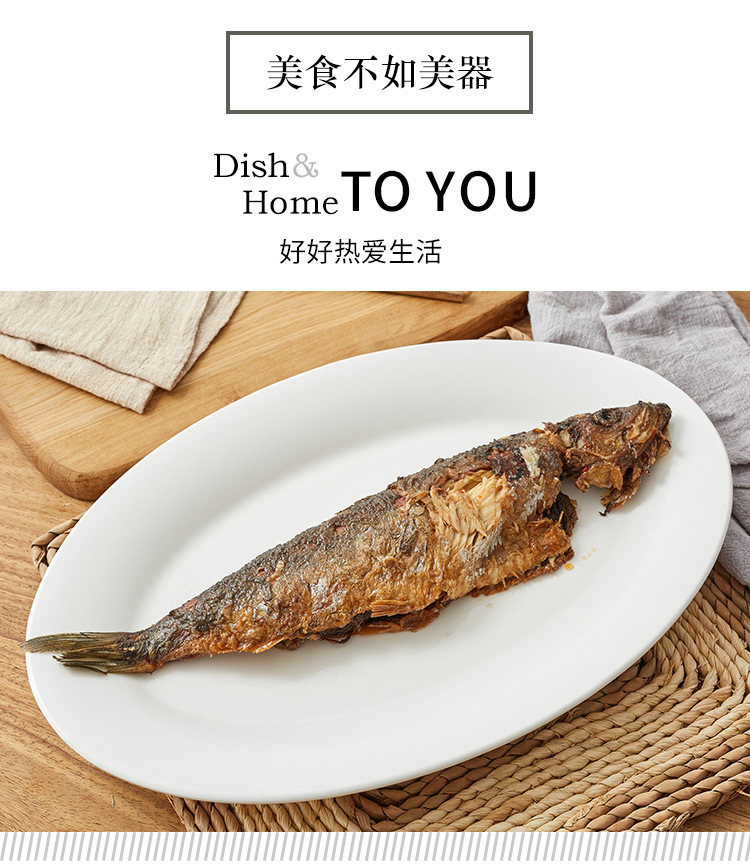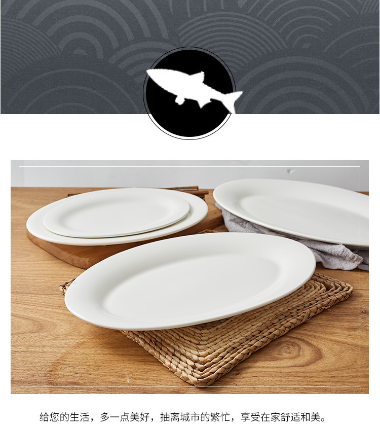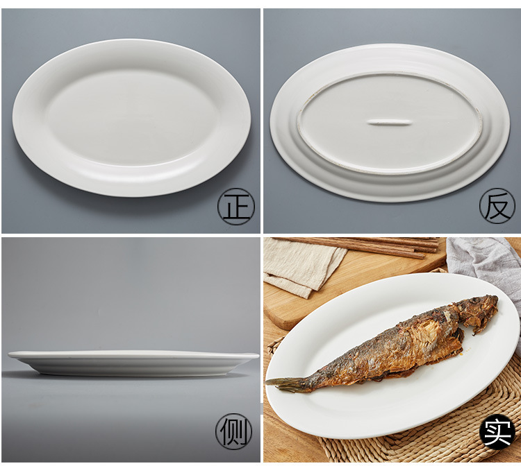 Plato de pescado de cerámica blanca pura Plato de pescado de porcelana reforzada ovalada gruesa Plato de pescado de autoservicio de vajilla de hotel de uso diario