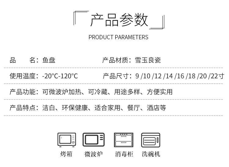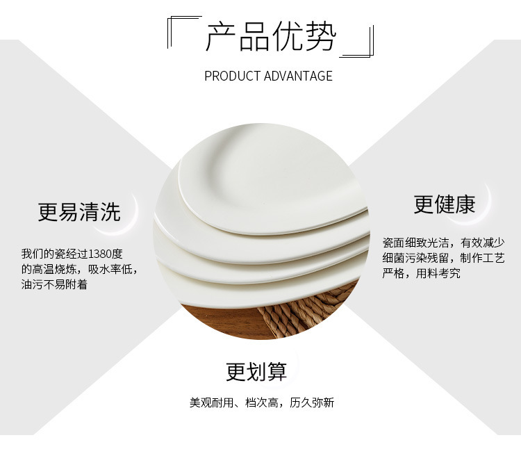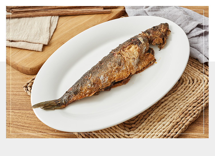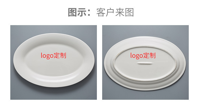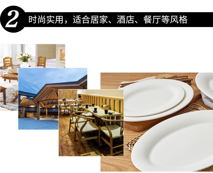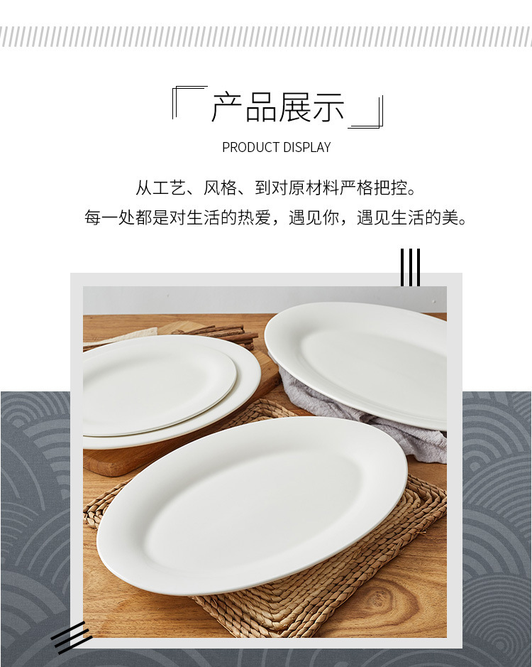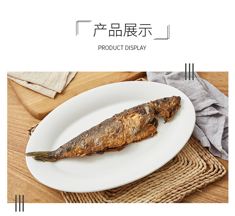 Plato de pescado de cerámica blanca pura Plato de pescado de porcelana reforzada ovalada gruesa Plato de pescado de autoservicio de vajilla de hotel de uso diario