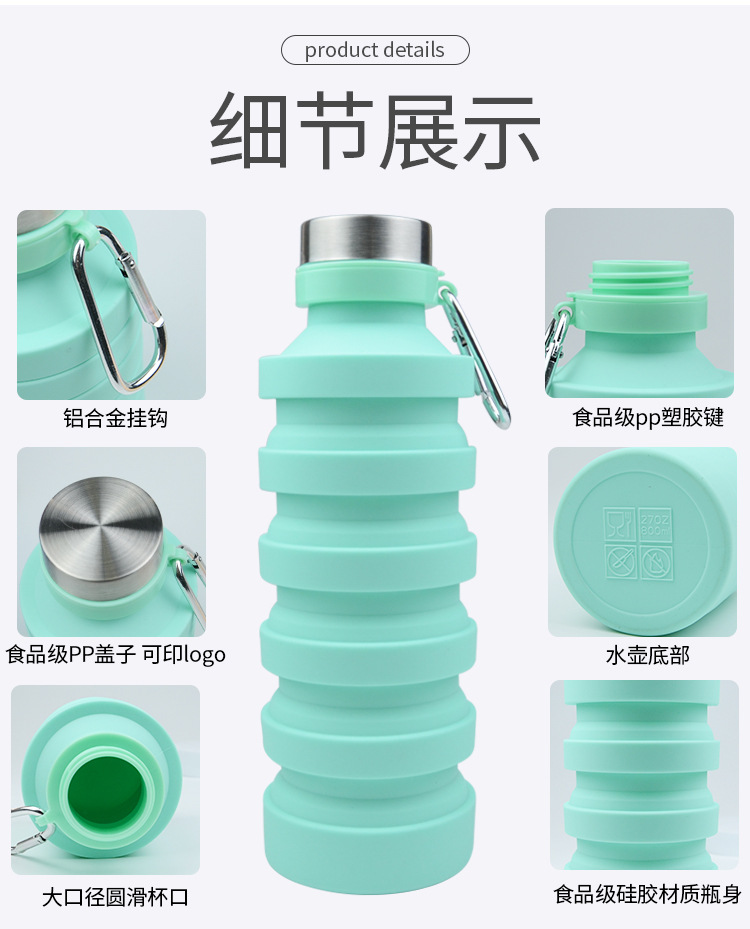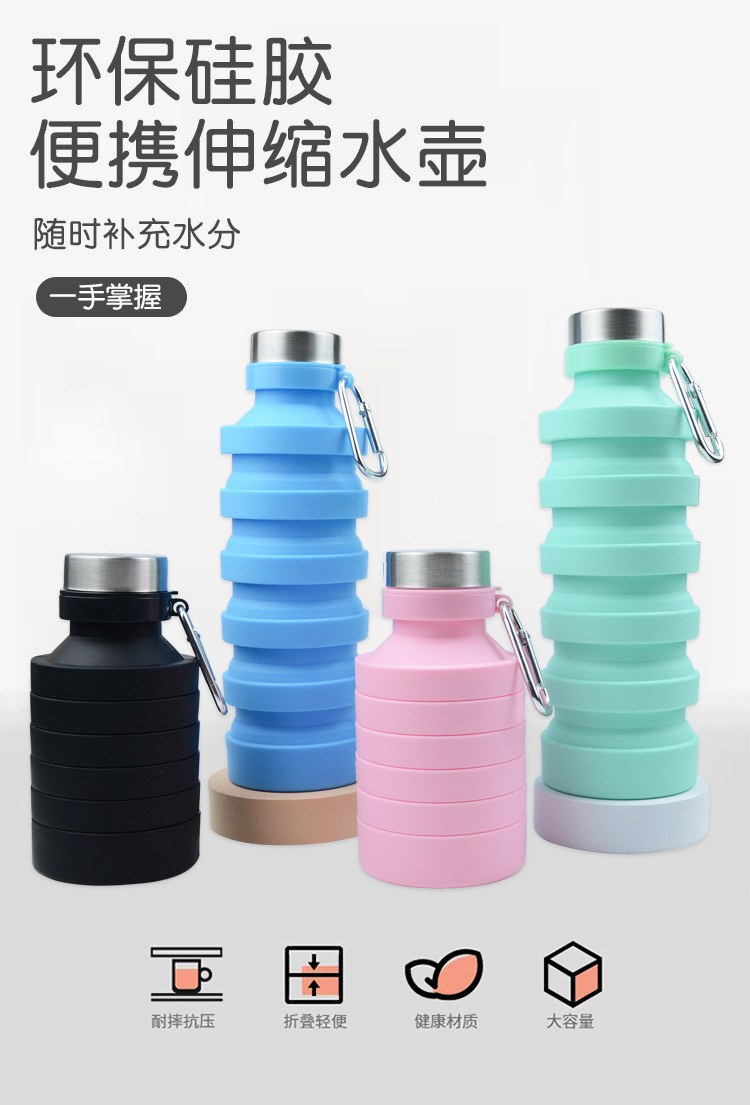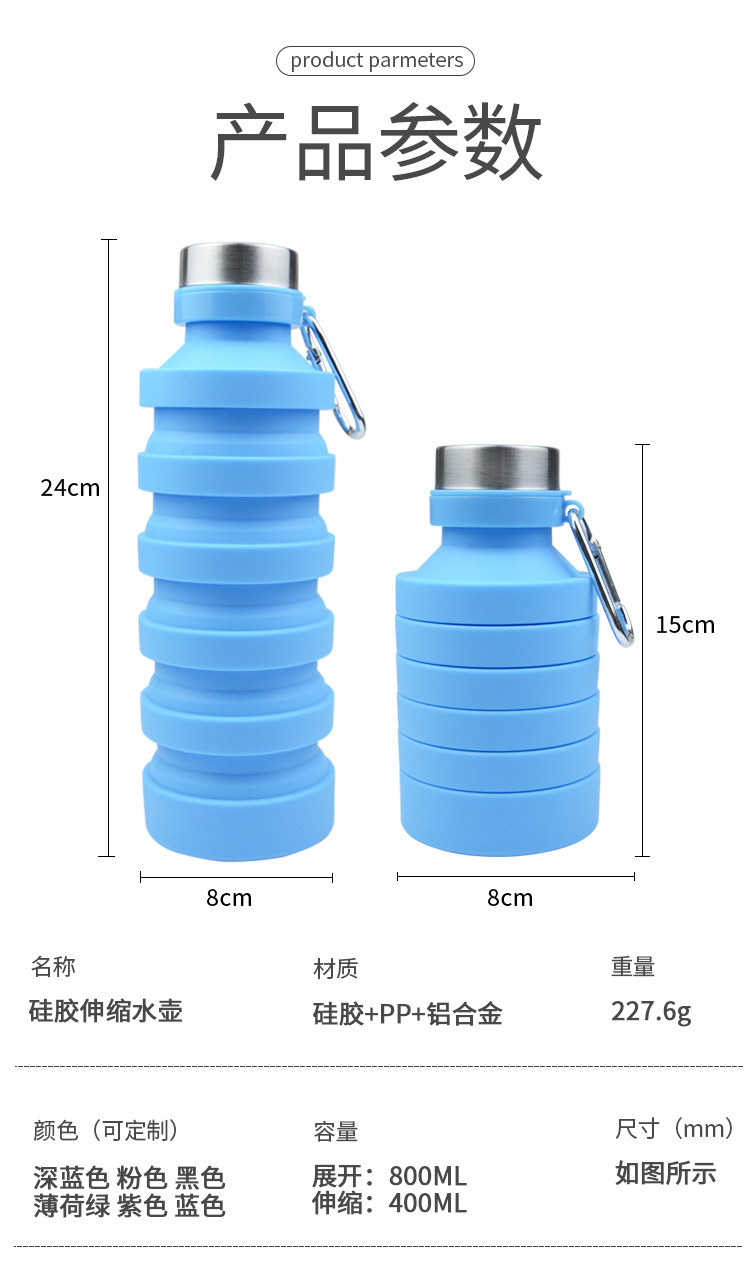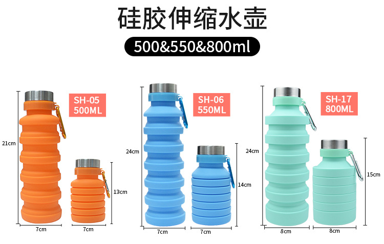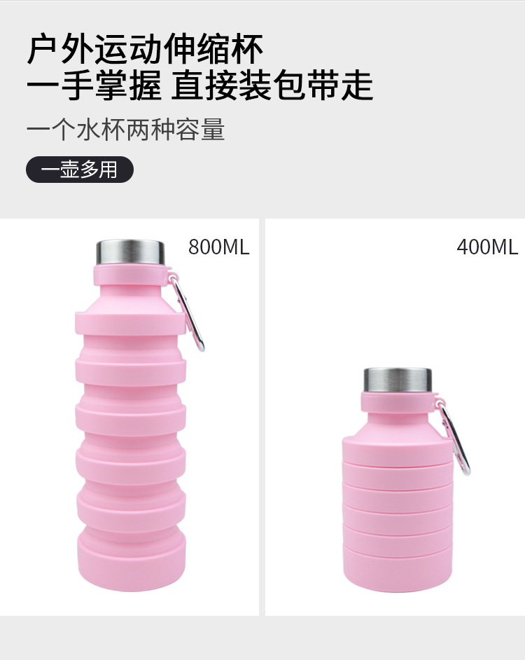 800ml de gran capacidad de silicona de grado alimenticio botella de agua plegable portátil de viaje botella de agua plegable portátil spot al por mayor