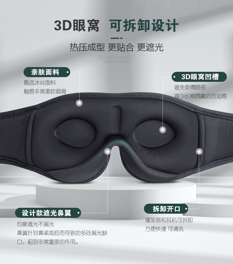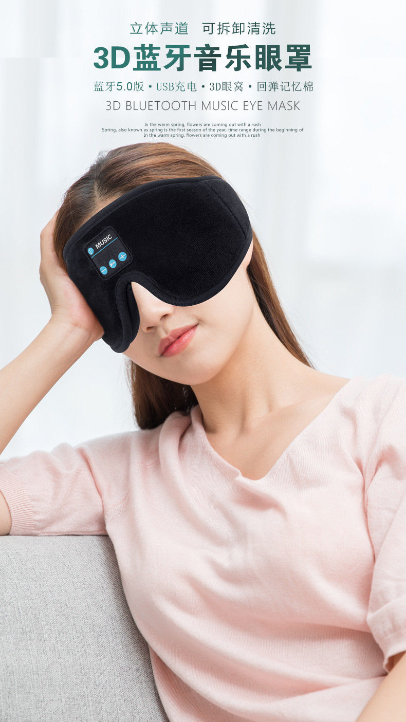 Transfronterizo 3D Bluetooth música máscara de ojos desmontable recargable llamada inalámbrica sombreante nariz ala máscara de ojos de sueño personalizada