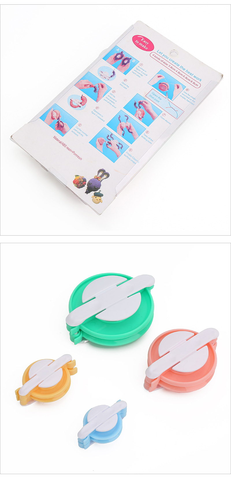 Venta directa de comercio exterior máquina de trenzado de bolas de lana color Conjunto de 4 piezas herramienta de trenzado muñeca bola de peluche bola que hace la máquina