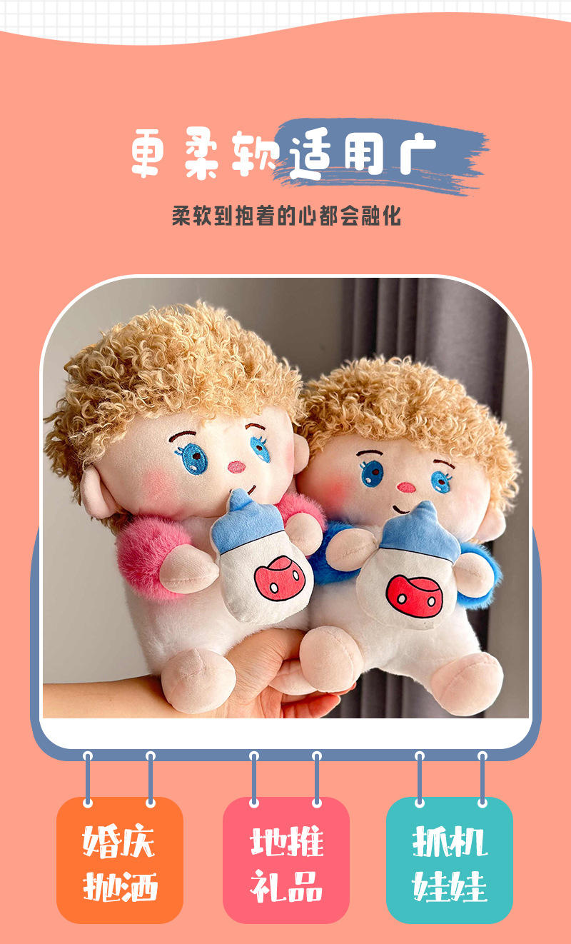 Muñeca de peluche de tela de 8 pulgadas para boda, juguete para agarrar y lanzar, producción de fábrica de muñecas, venta al por mayor.