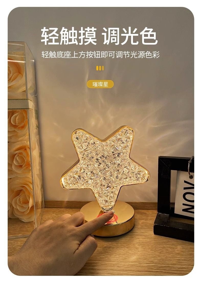 Estrellas transfronterizas decoración de la luna recargable lámpara de escritorio de protección de ojos ambiente dormitorio conveniente toque lámpara de cabecera de la cama creativa luz de noche