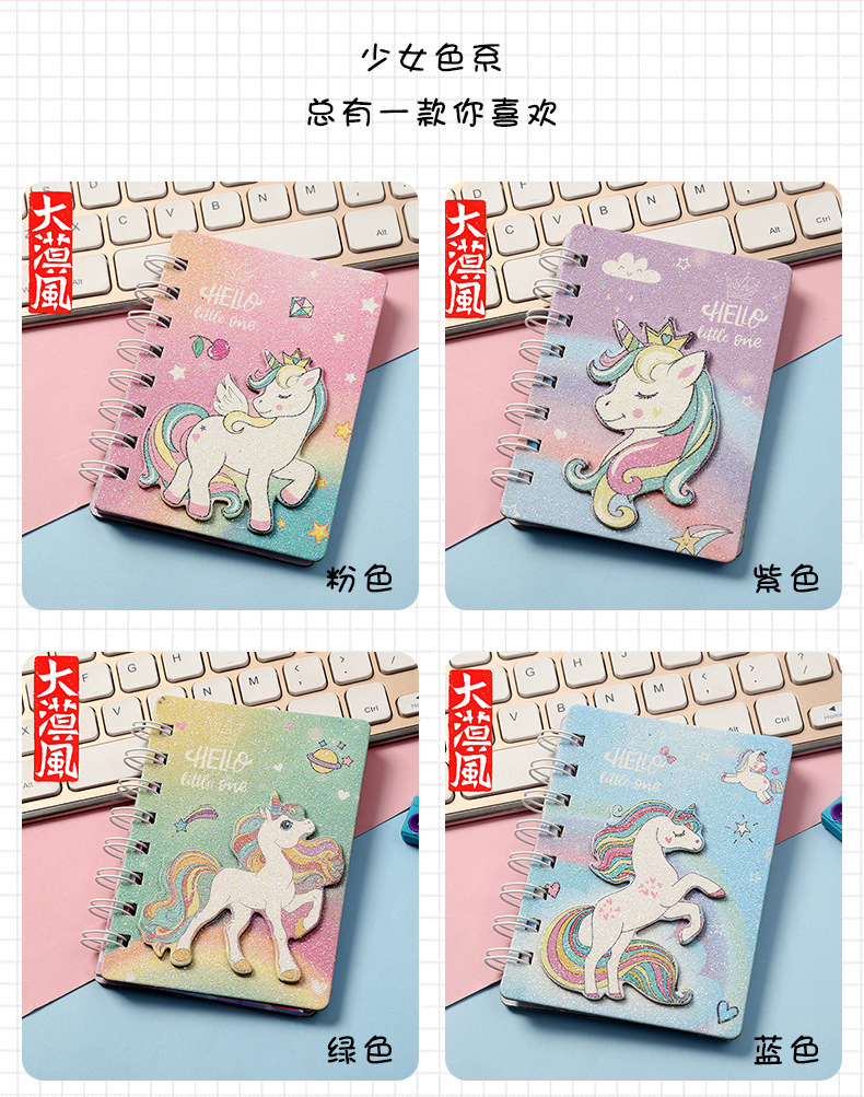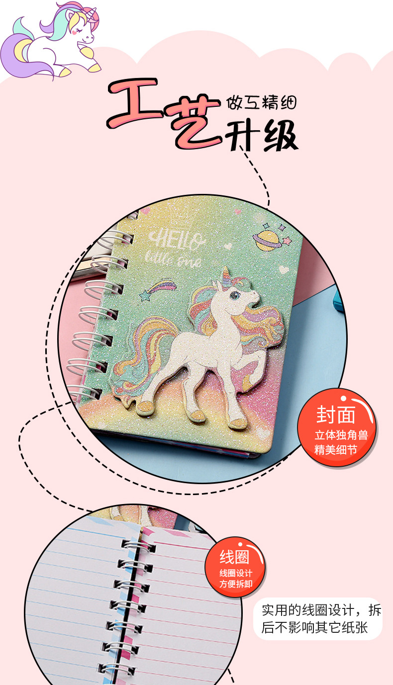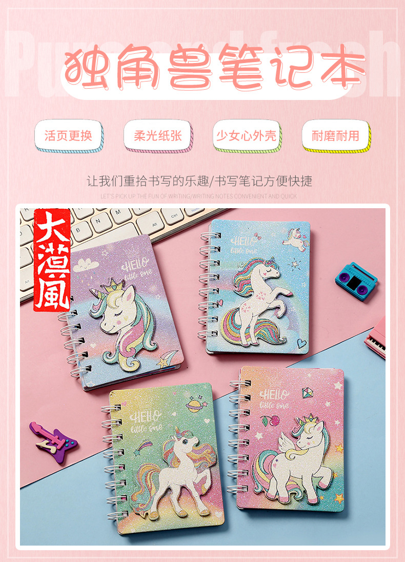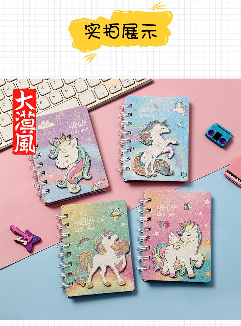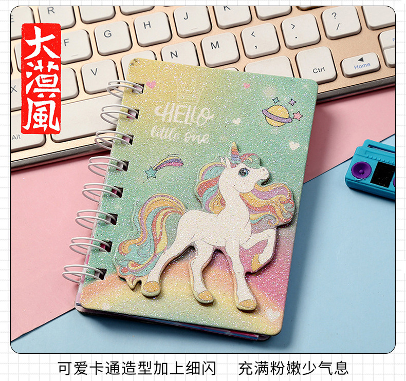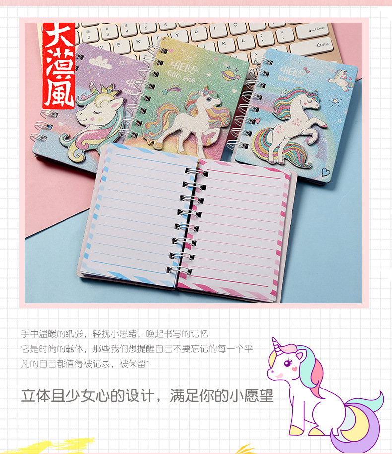 Notebook de hojas sueltas tridimensionales de unicornio de celebridades de Internet Cute Girl Heart Bobina Bloc de notas Mini libro de contabilidad manual Papelería