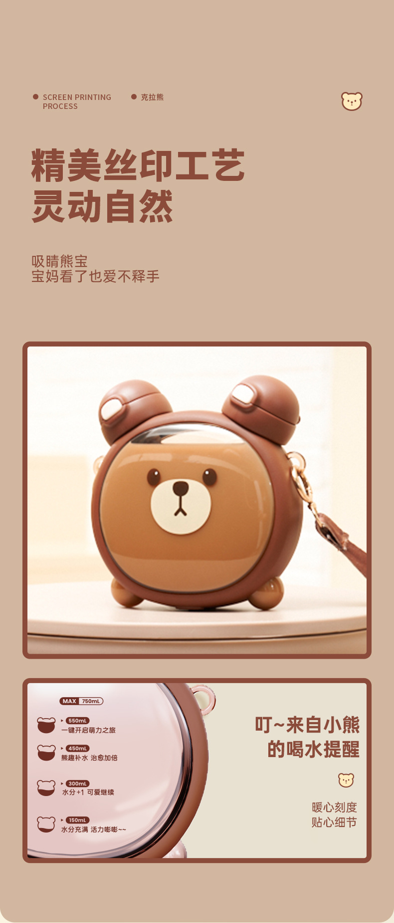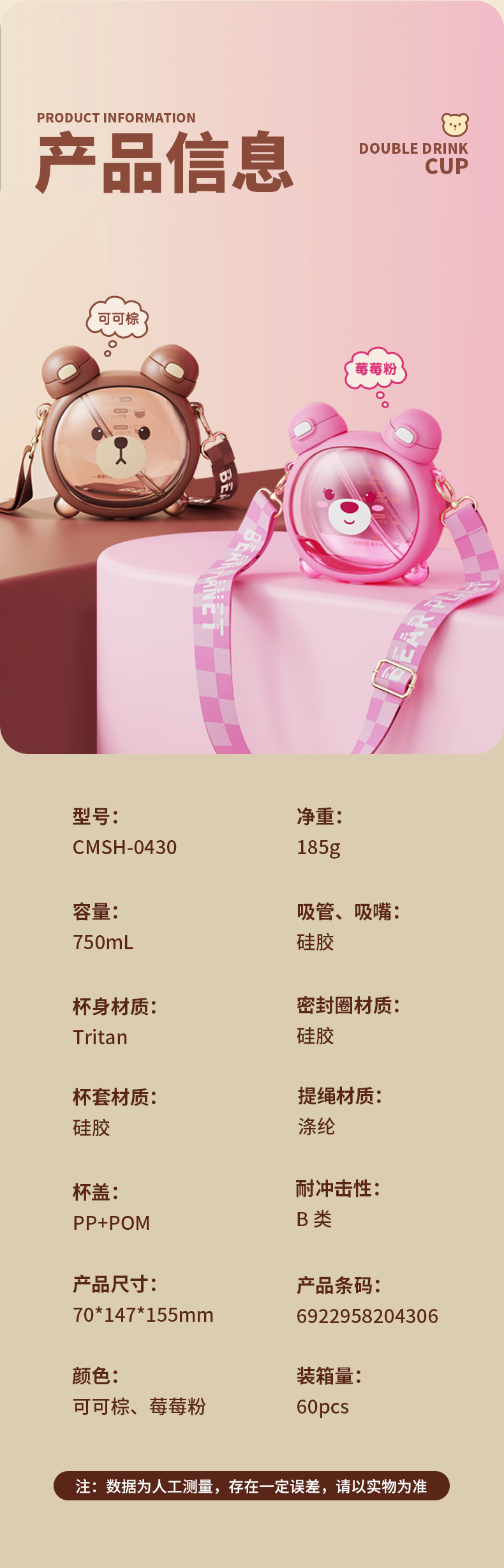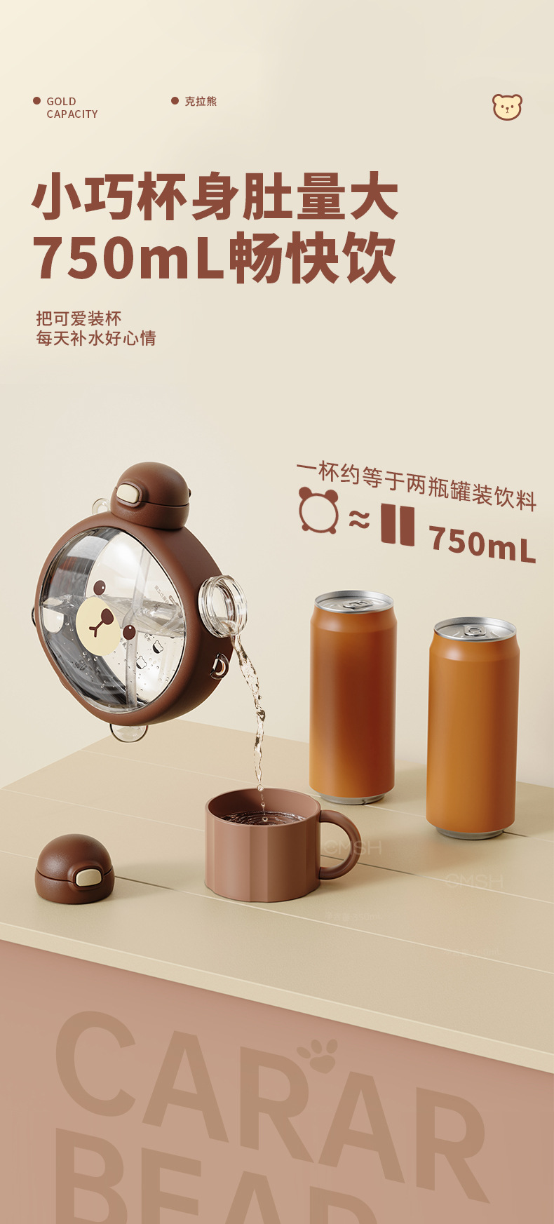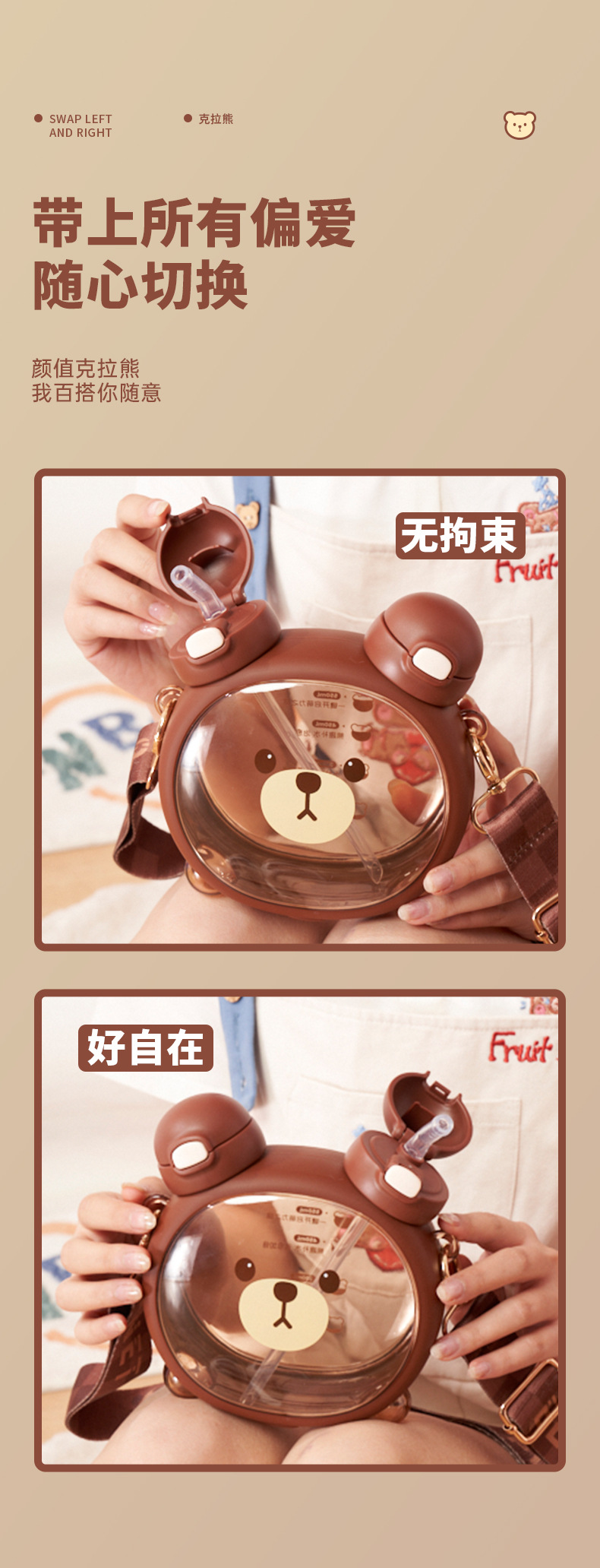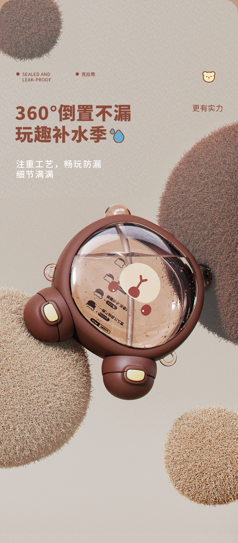 Taza de agua para niños diseño vida de fresa y oso, doble pajita, plástico resistente al calor 750ML, súper lindo hervidor para estudiantes.