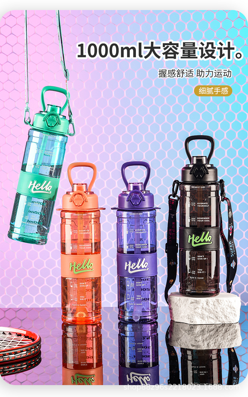 Amazon Shake2024 nuevo HELLO doble bebida taza portátil de plástico hervidor deportivo masculino verano al aire libre