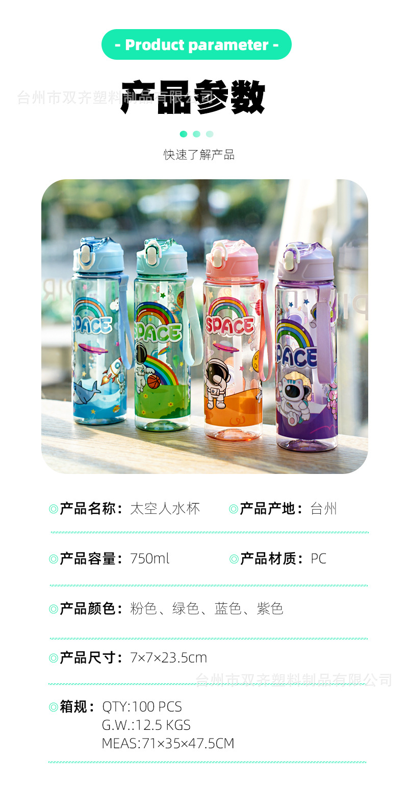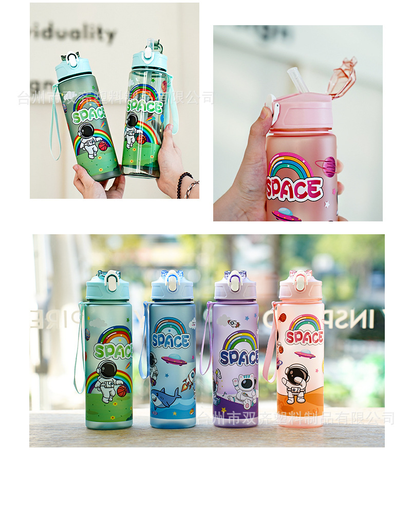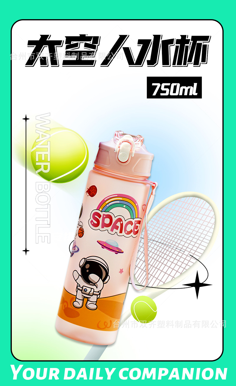 Taza de agua deportiva con pajilla, diseño astronauta, plástico resistente, uso exterior