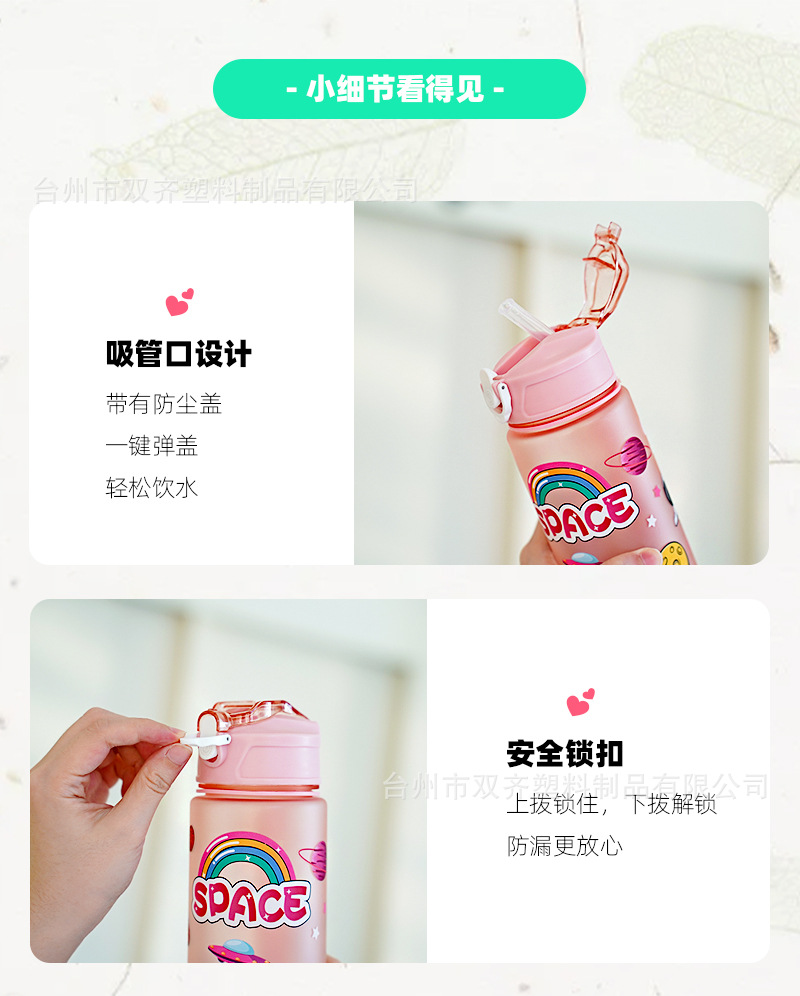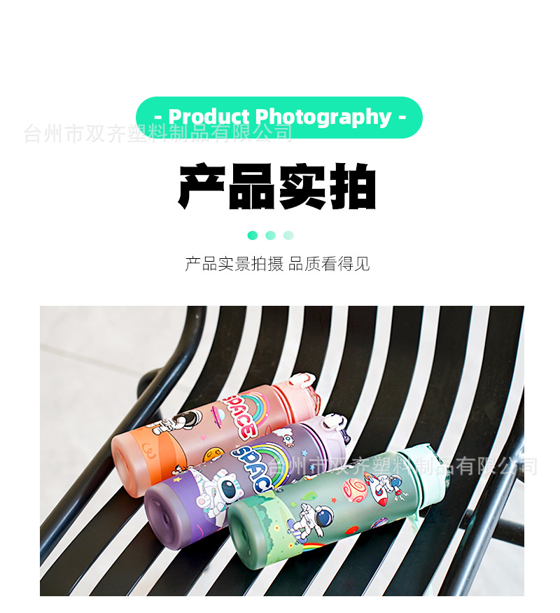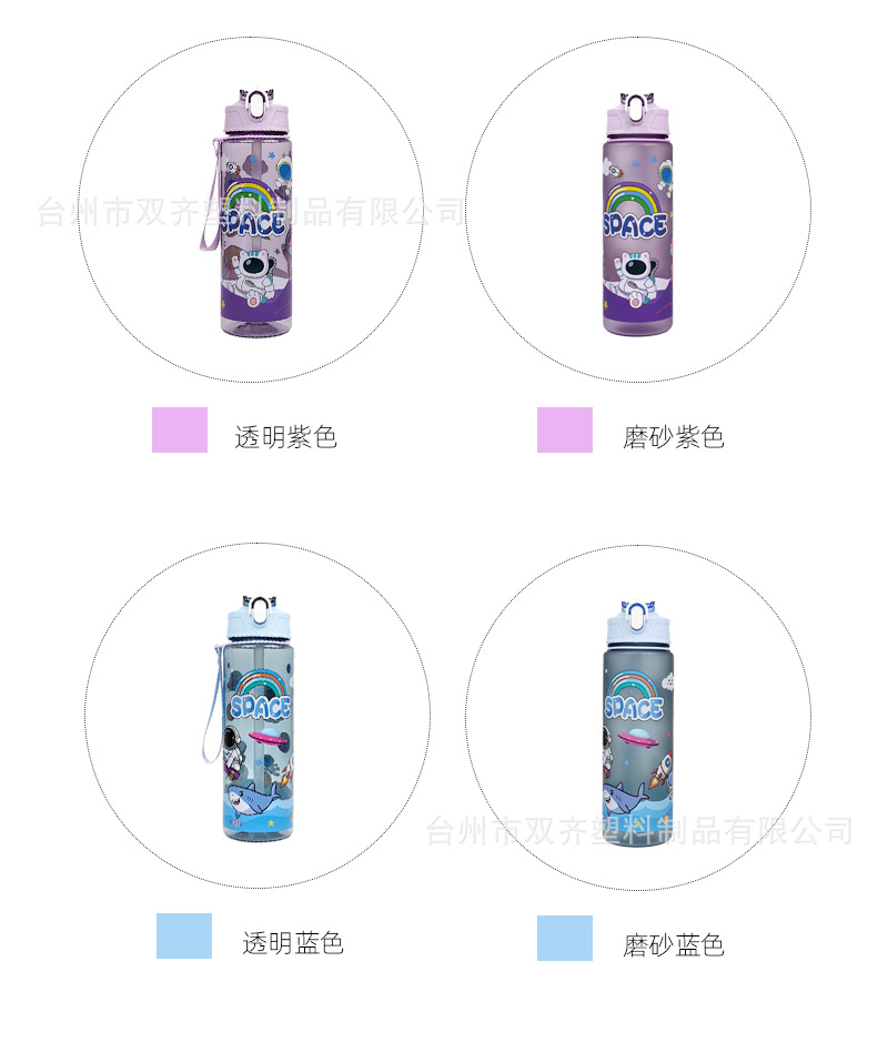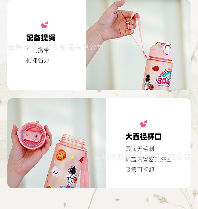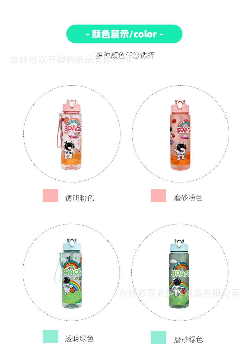 Taza de agua deportiva con pajilla, diseño astronauta, plástico resistente, uso exterior