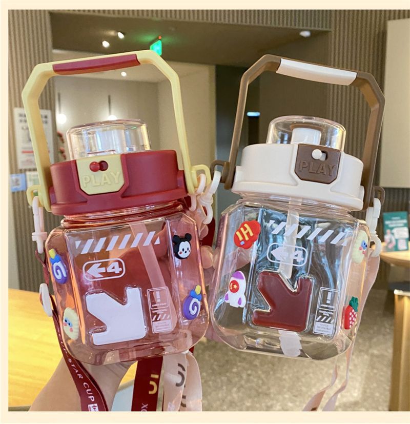 Verano niños de dibujos animados tazas de agua de plástico de gran capacidad lindas tazas portátiles tazas de paja deportivas al aire libre para hombres y mujeres