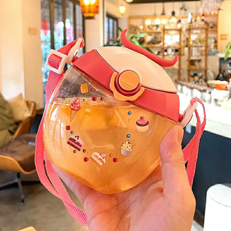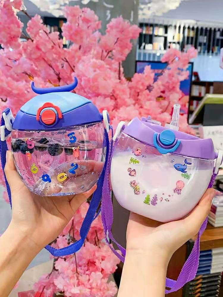 Botella infantil con diseño donut, vaso portátil con pajilla