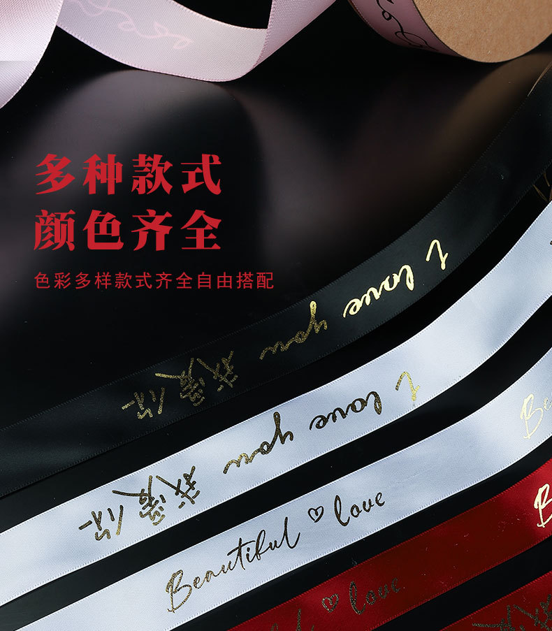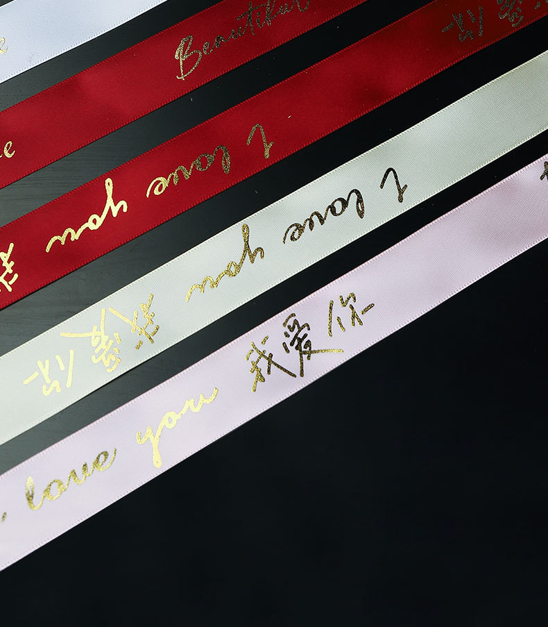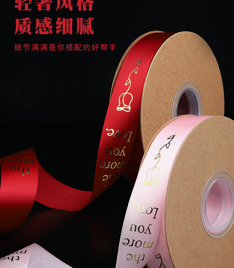 Al por mayor 2,5 cm cinta dorada Rosa te amo flor pastel de cumpleaños caja de regalo cinta de embalaje