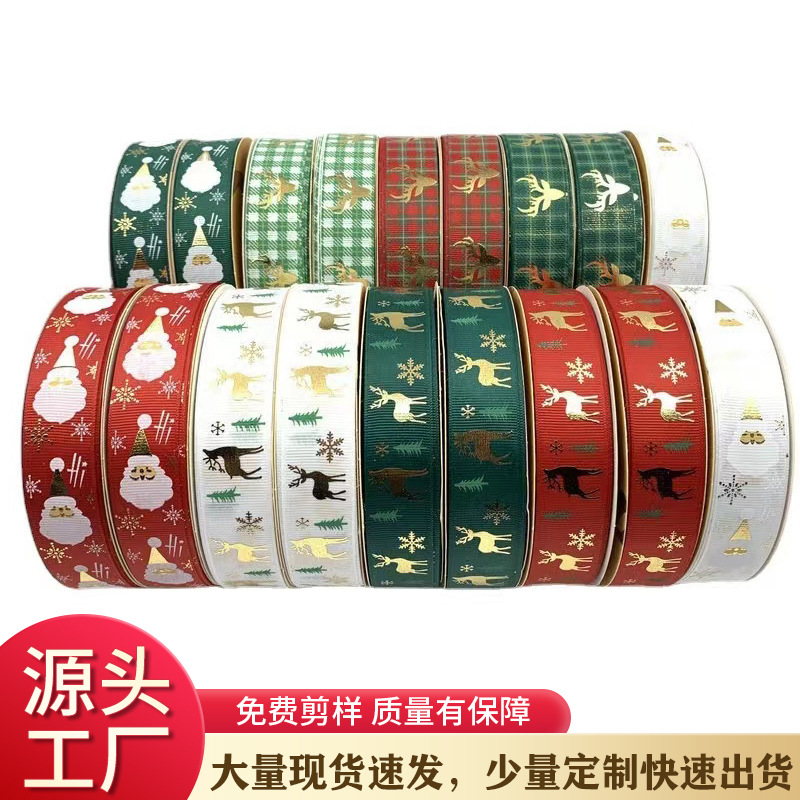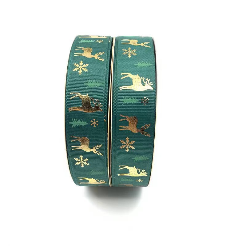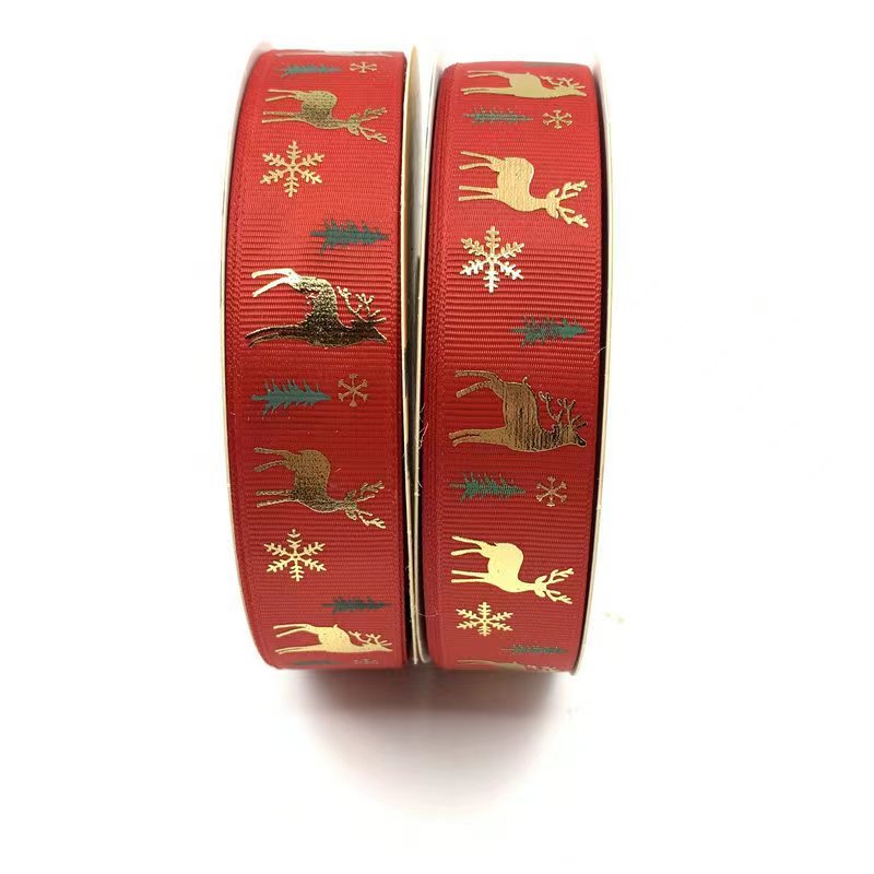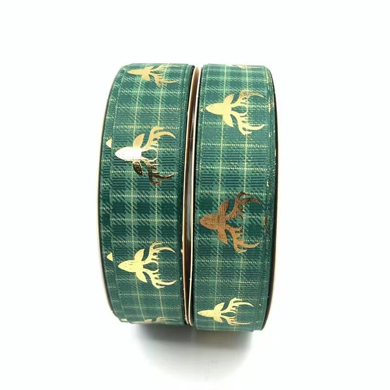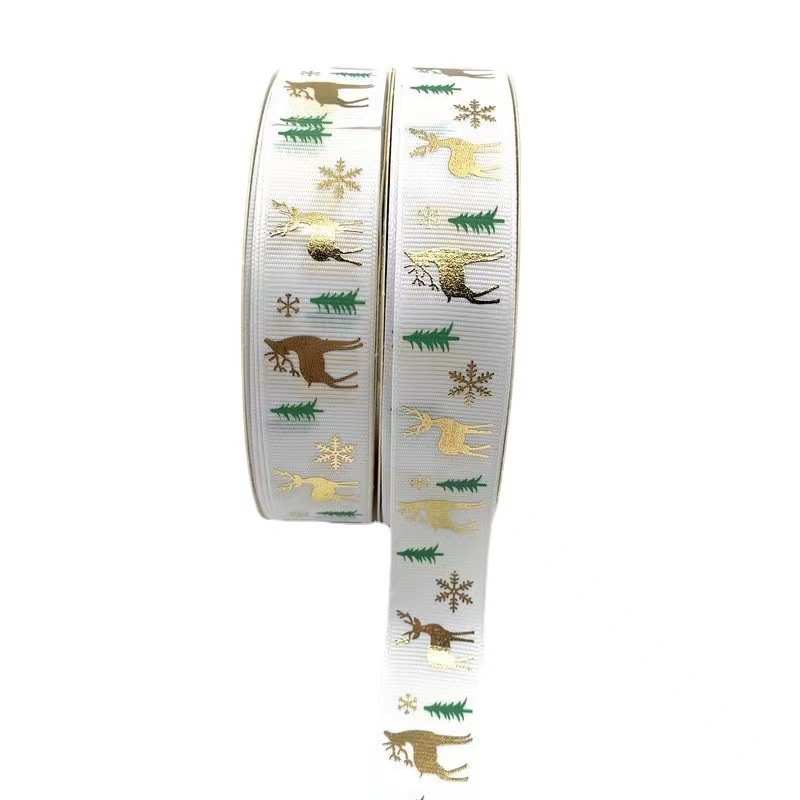2,5 CM hilo de cinta de Navidad dorado cinta ELK Santa Claus decoración caja de regalo embalaje cinta de impresión lote