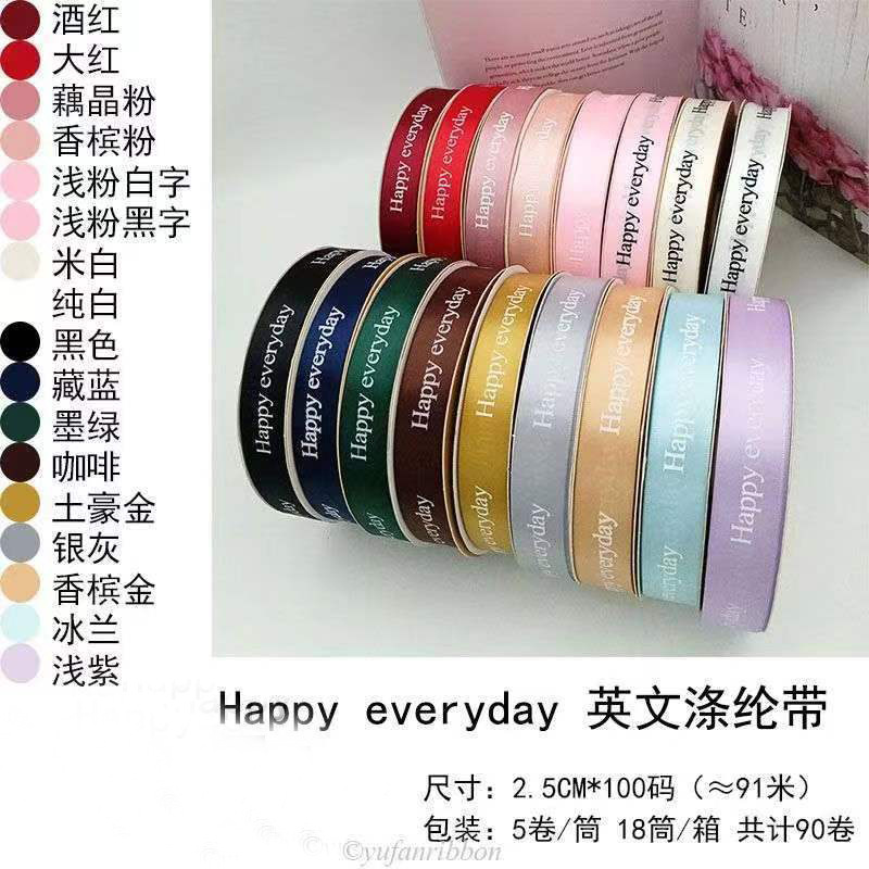 Cinta de impresión inglesa feliz todos los días pastel de flores caja de regalo cinta de embalaje oferta especial cinta al por mayor