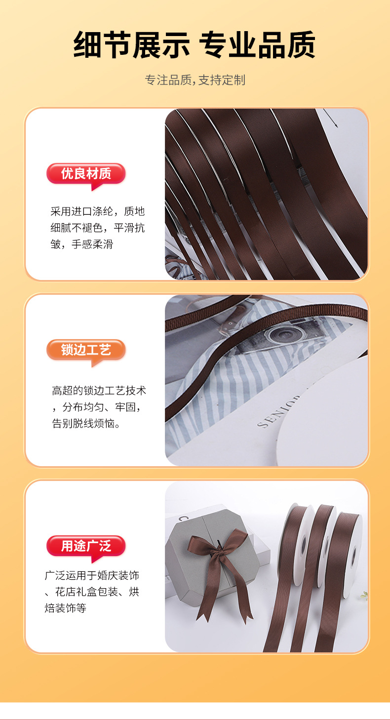 Suministro directo de fábrica cinta roscada cinta marrón caja de regalo embalaje bolso cinta accesorios de ropa cinta al por mayor