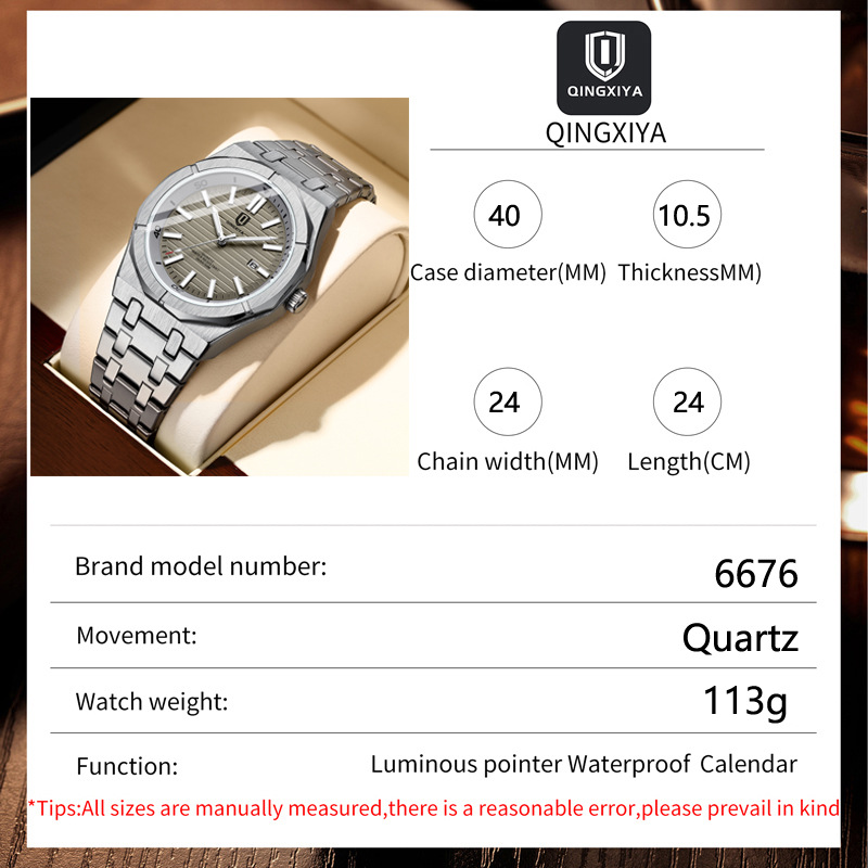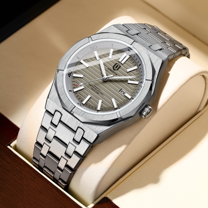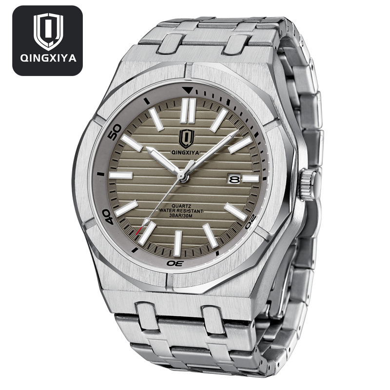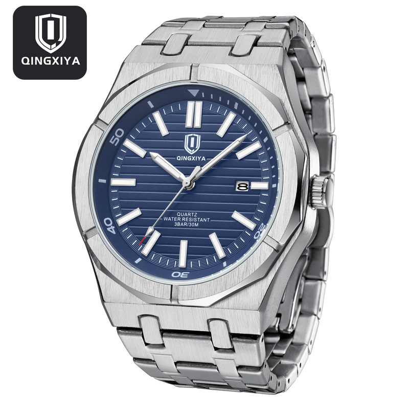 QINGXIYA marca de moda Reloj Los Hombres Acero inoxidable impermeable luminoso calendario deportes reloj cuarzo los hombres