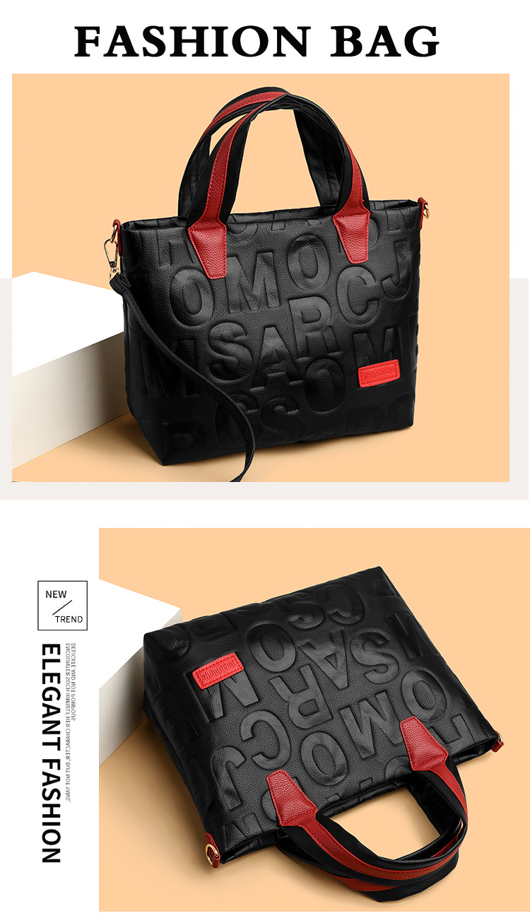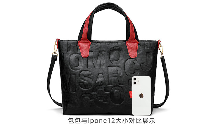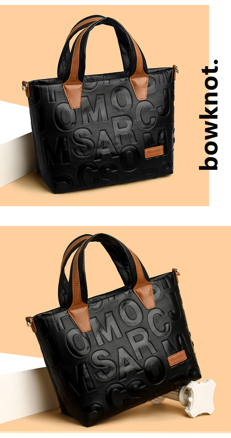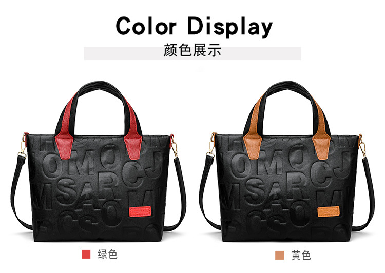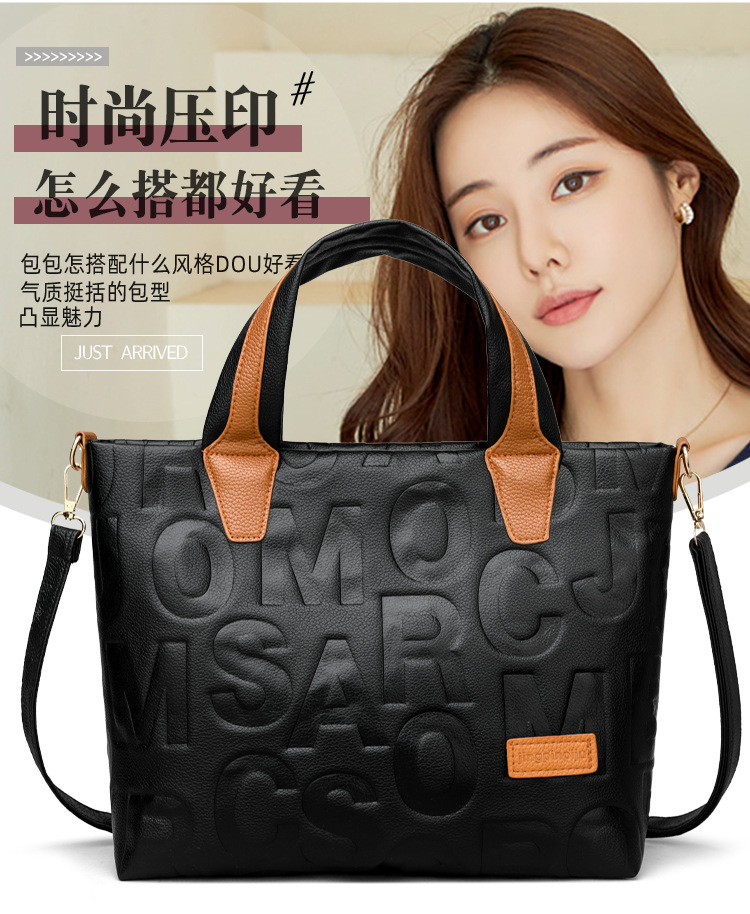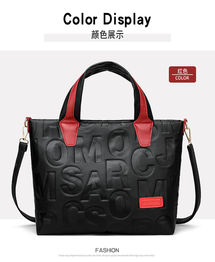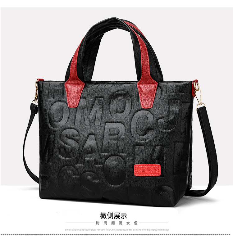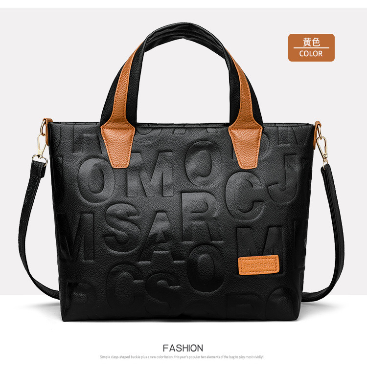 Comercio exterior transfronterizo nuevo bolso de mano de moda elegante Carta en relieve de moda europea y americana de gran capacidad bolso de hombro