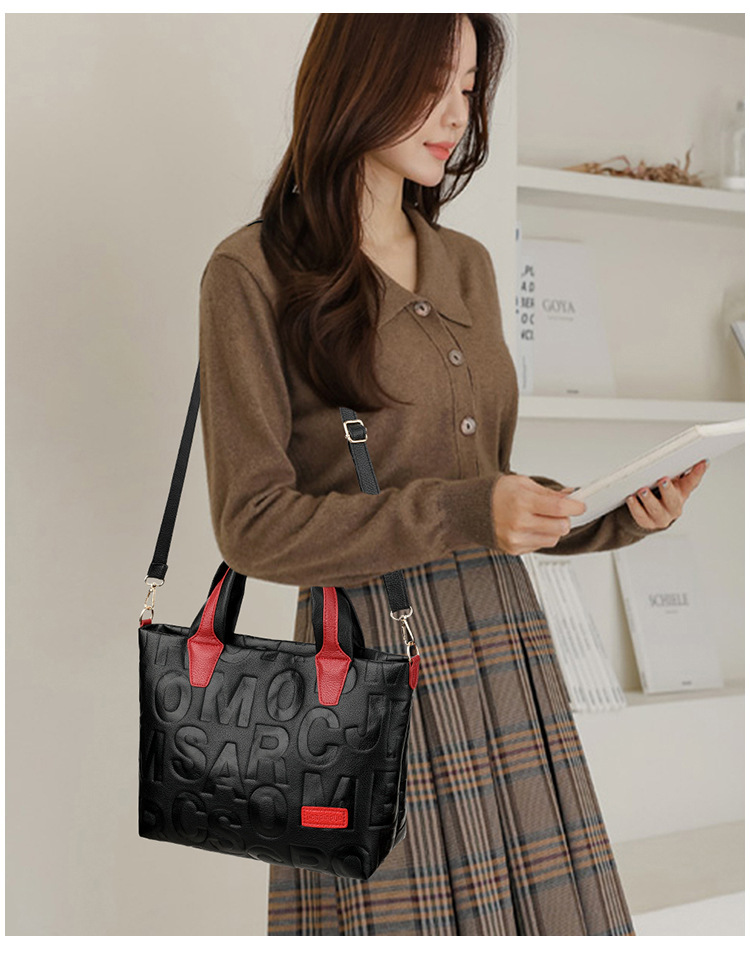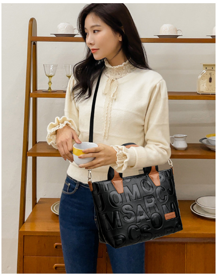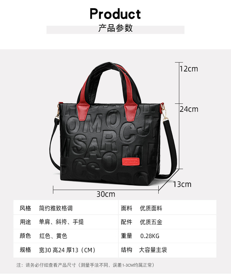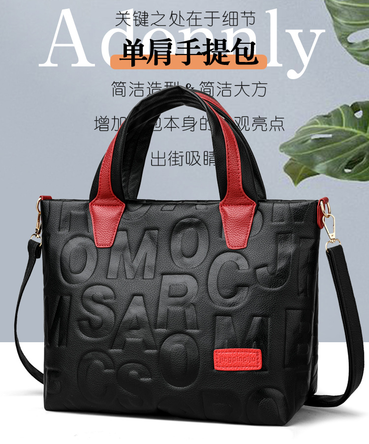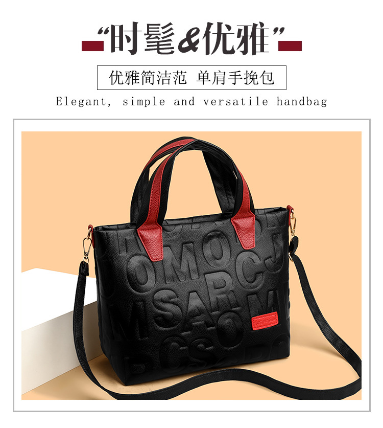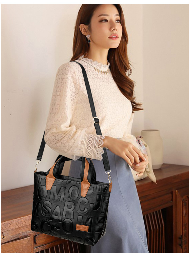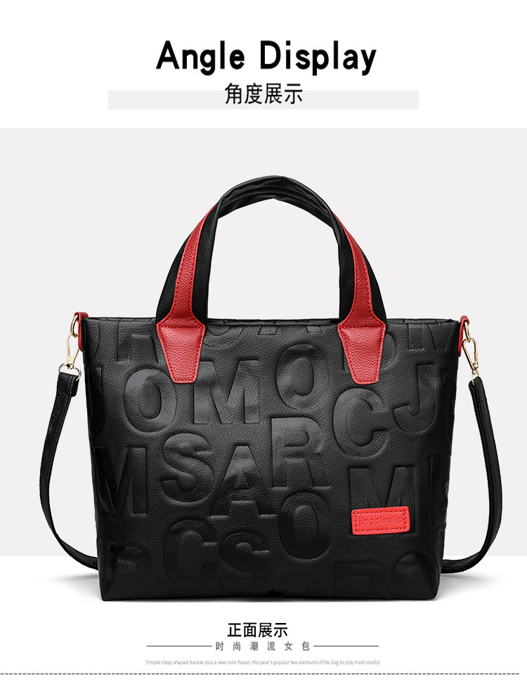 Comercio exterior transfronterizo nuevo bolso de mano de moda elegante Carta en relieve de moda europea y americana de gran capacidad bolso de hombro