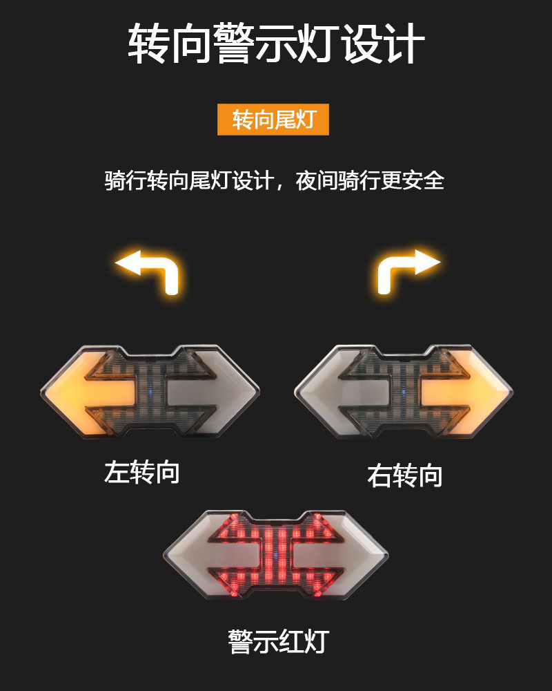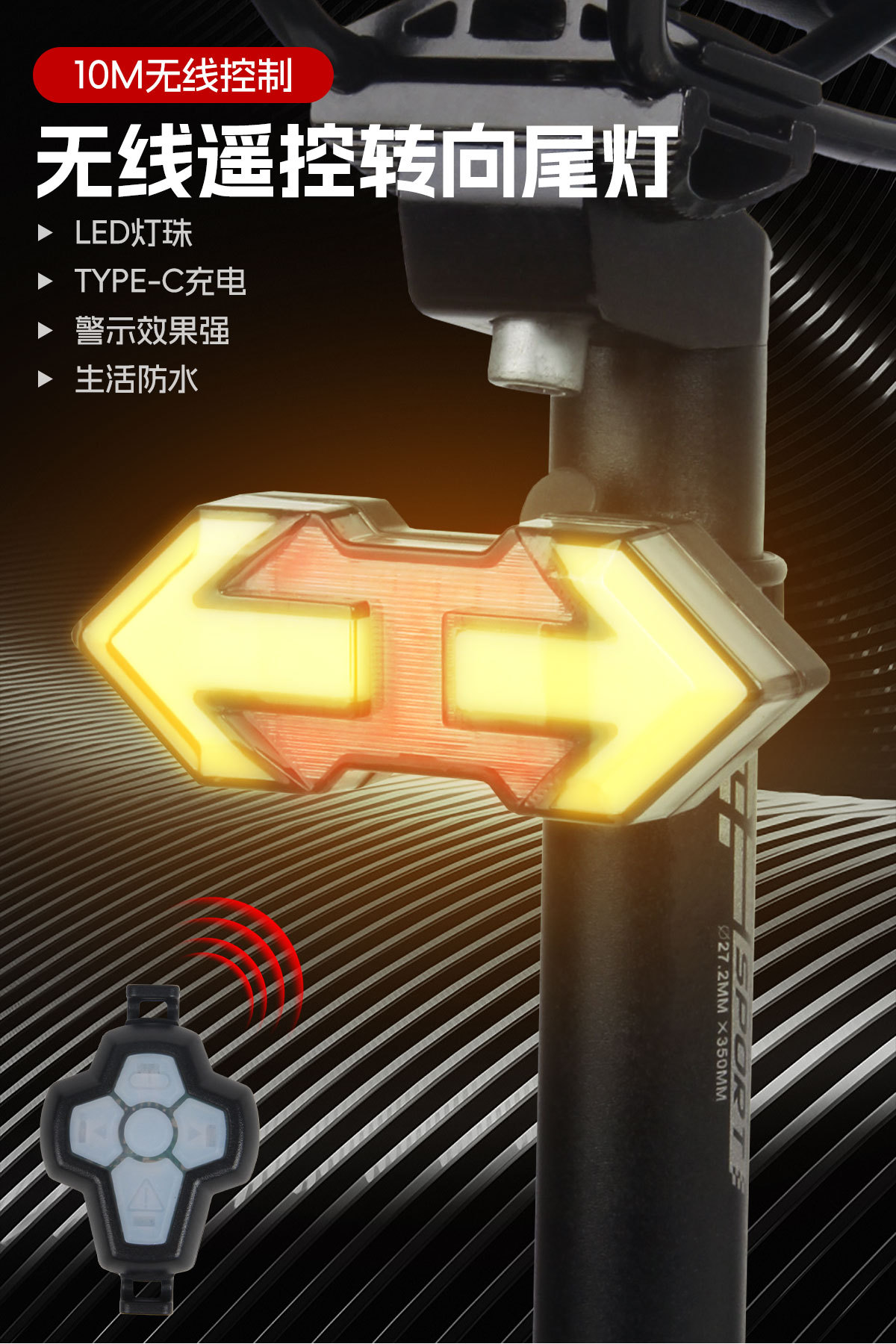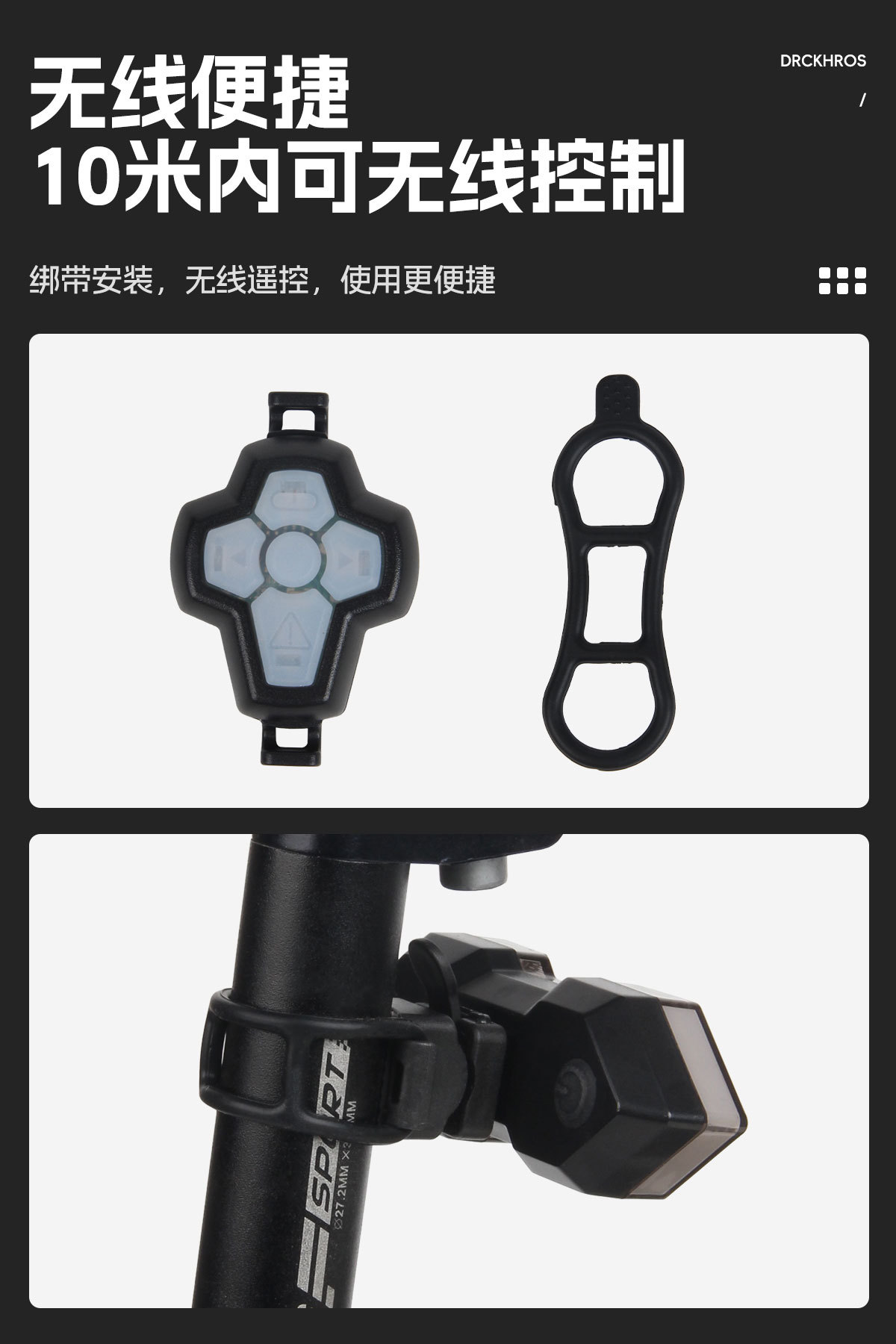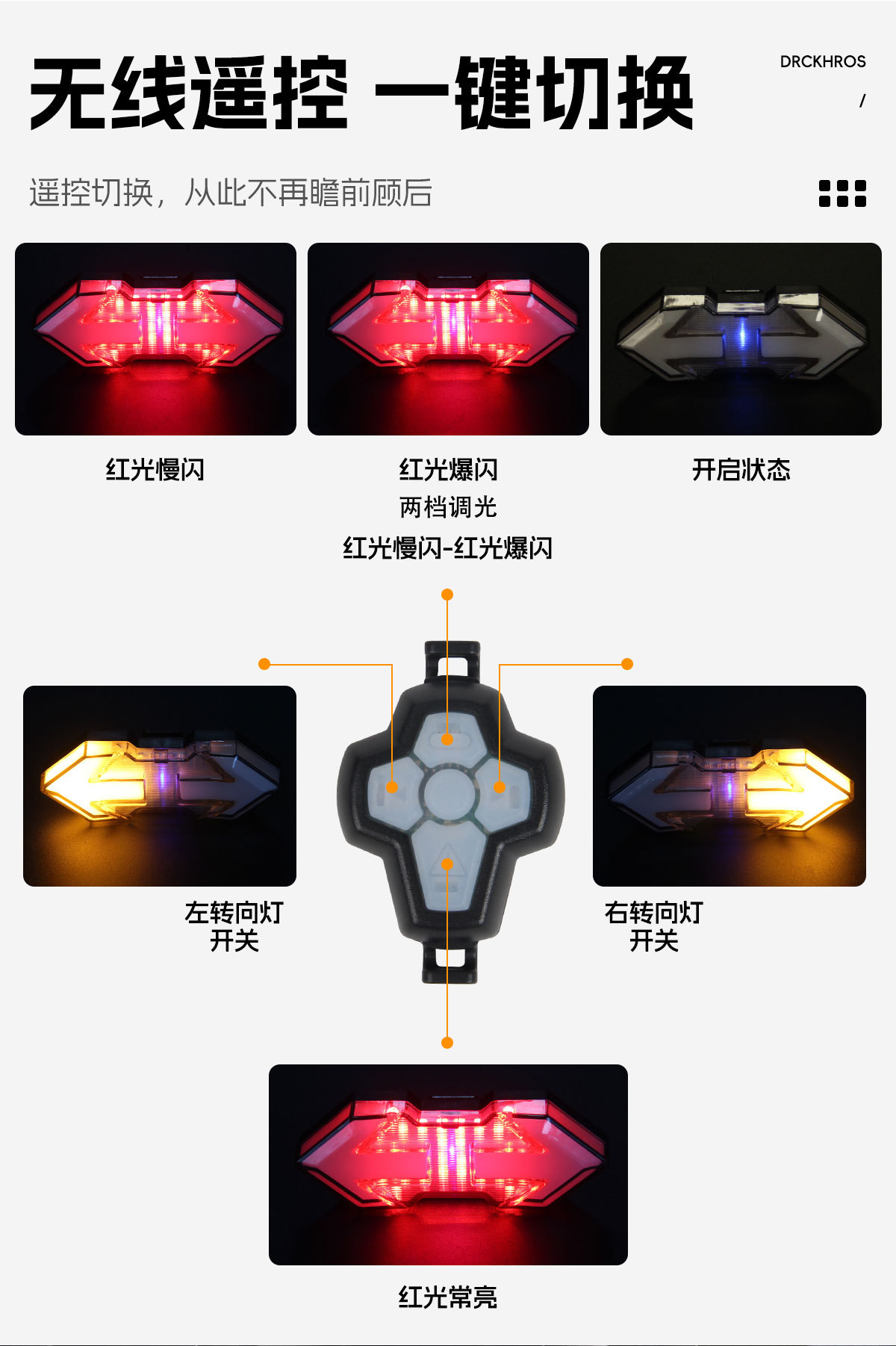 Luz trasera de bicicleta luz de advertencia control remoto inteligente USB señal de giro de carga de freno de conducción nocturna súper brillante señal de giro de conducción