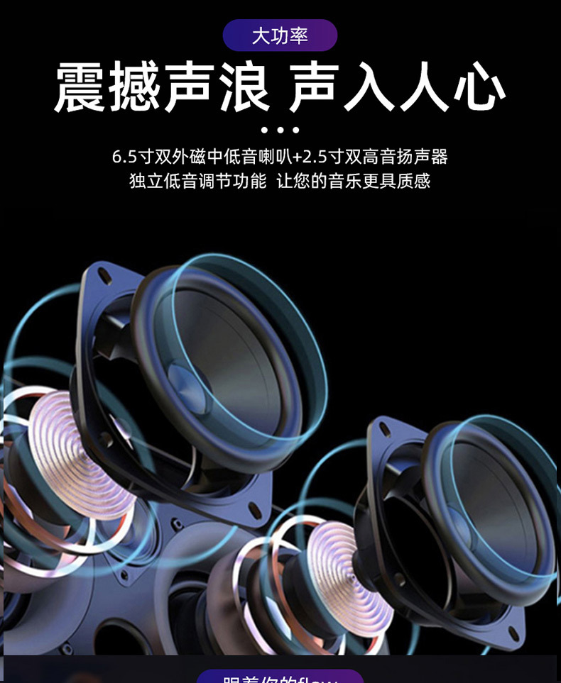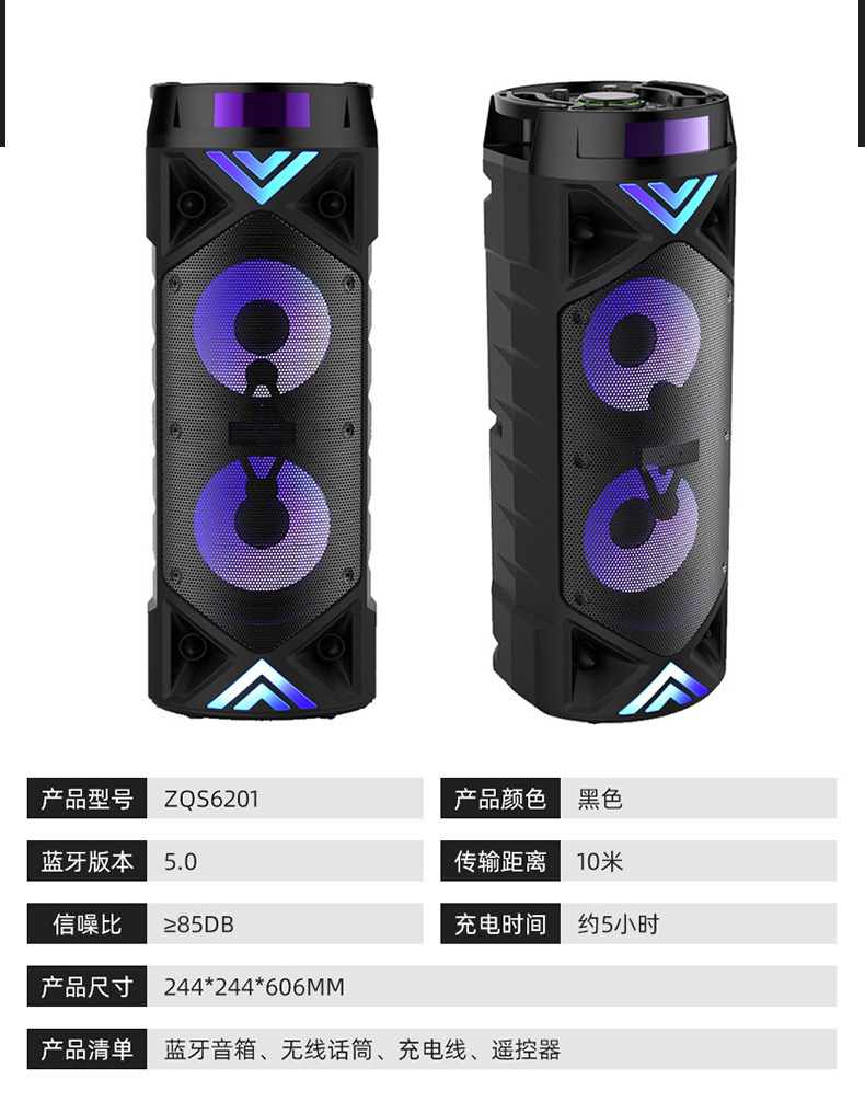 Sing-e ZQS6201 comercio exterior doble altavoz de 6,5 pulgadas Bluetooth audio de alta potencia radio subwoofer APP