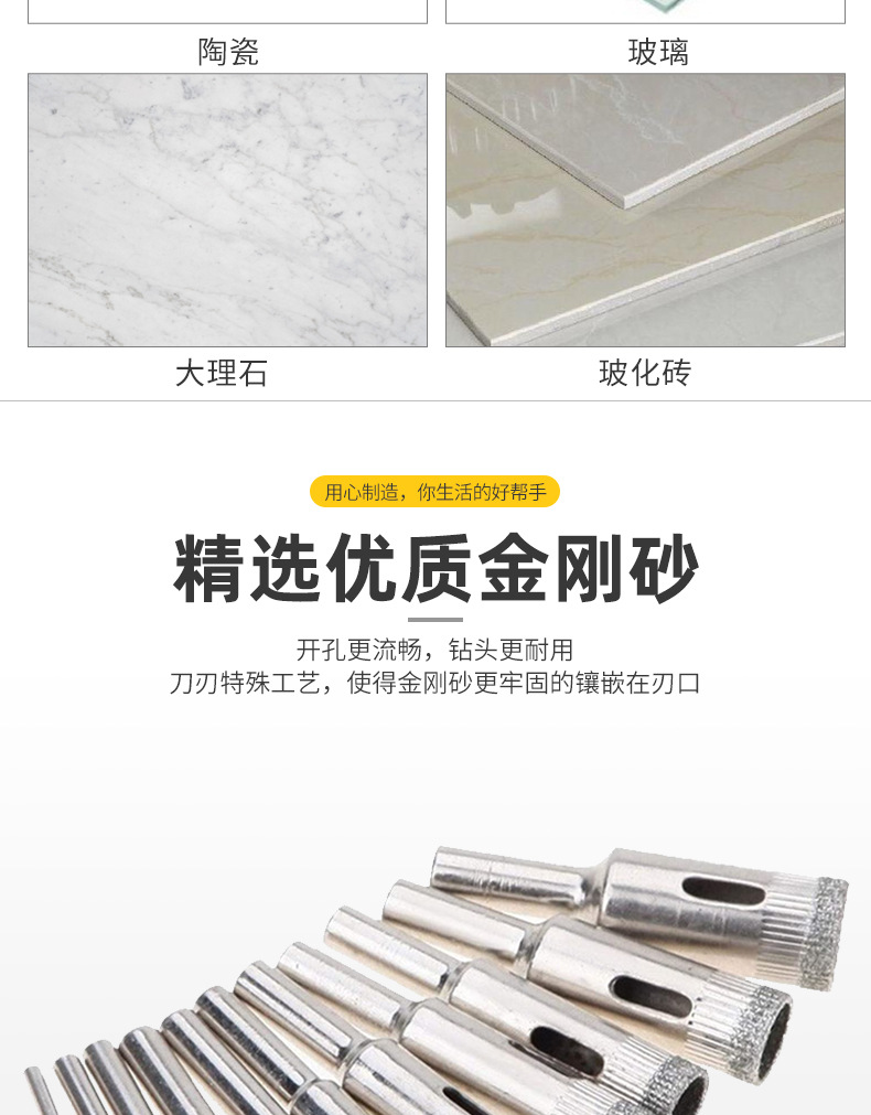 Juego transfronterizo de 15 piezas de 6-50mm abridor de vidrio de diamante de mármol de cerámica cuentas de pulido redondeado