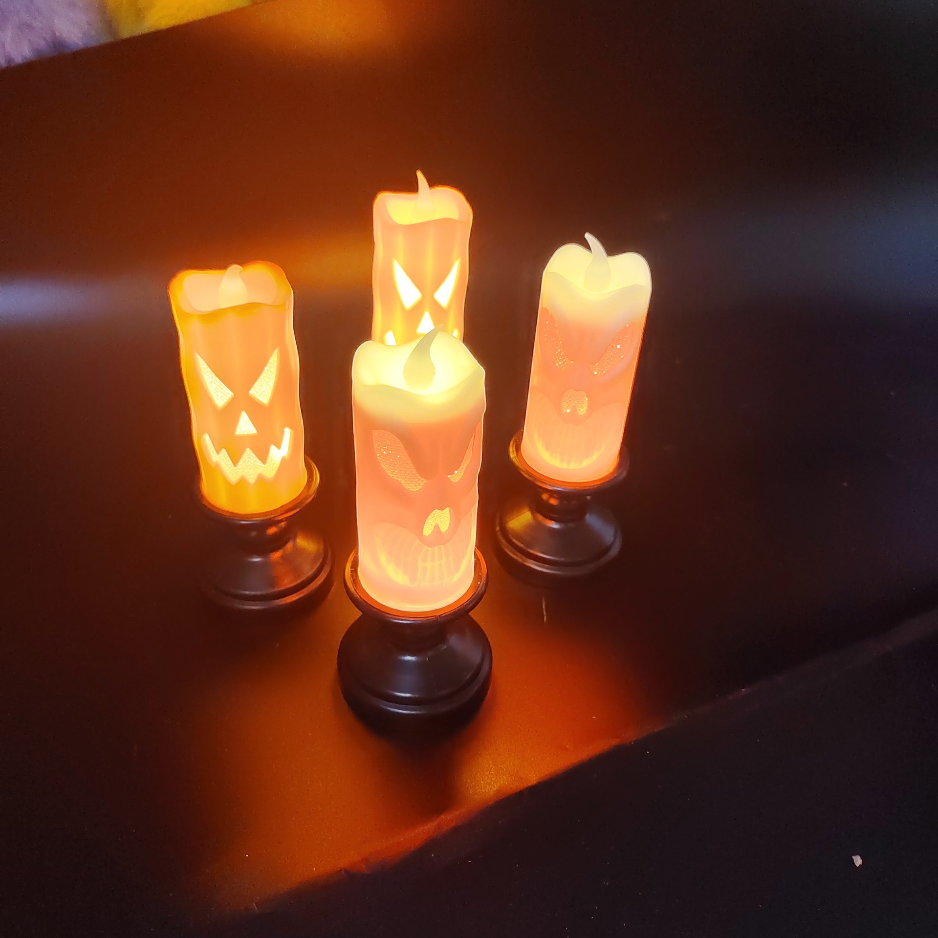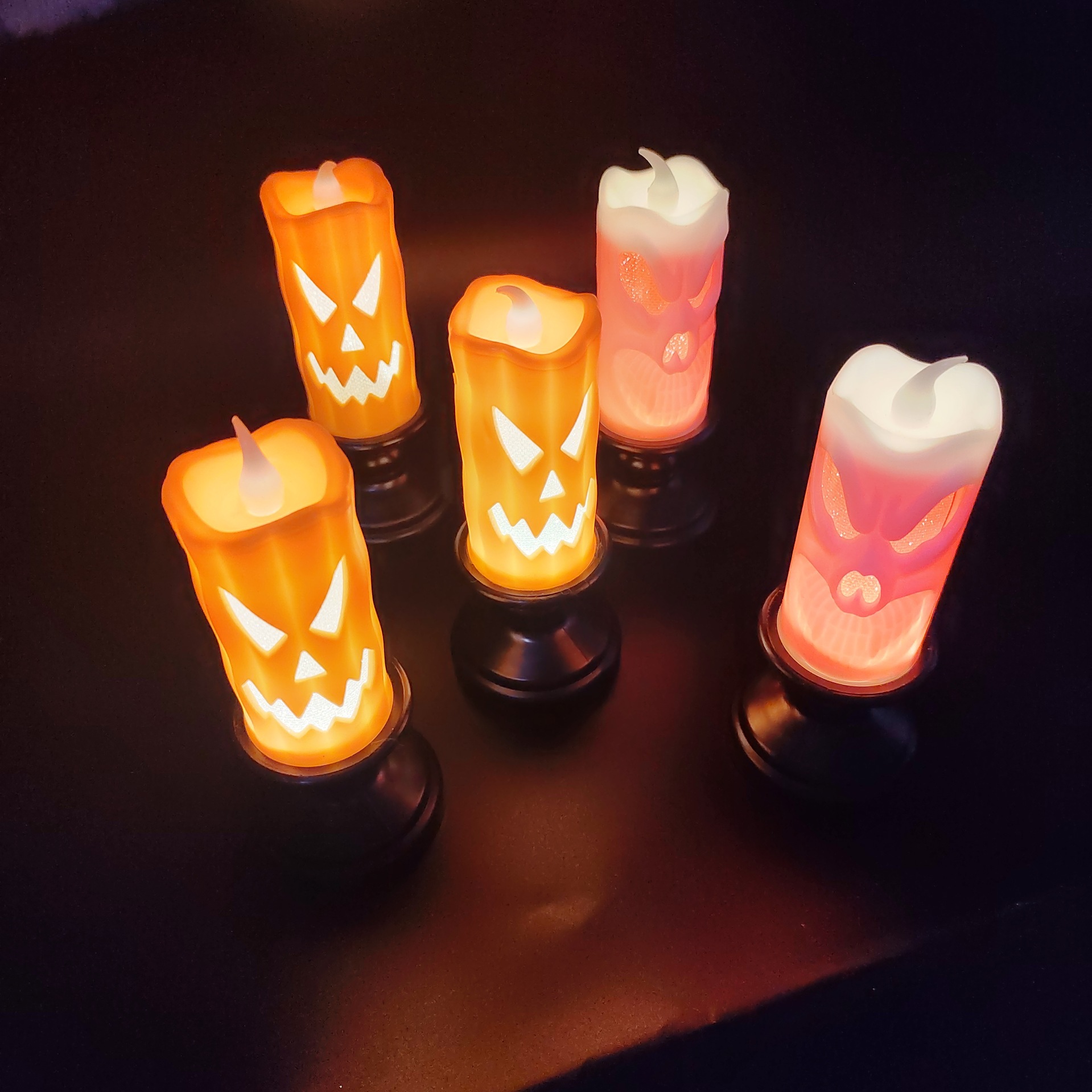 Decoración de Halloween calabaza lámpara de vela LED lámpara de vela electrónica accesorios de decoración horror lámpara de calavera adornos de vela