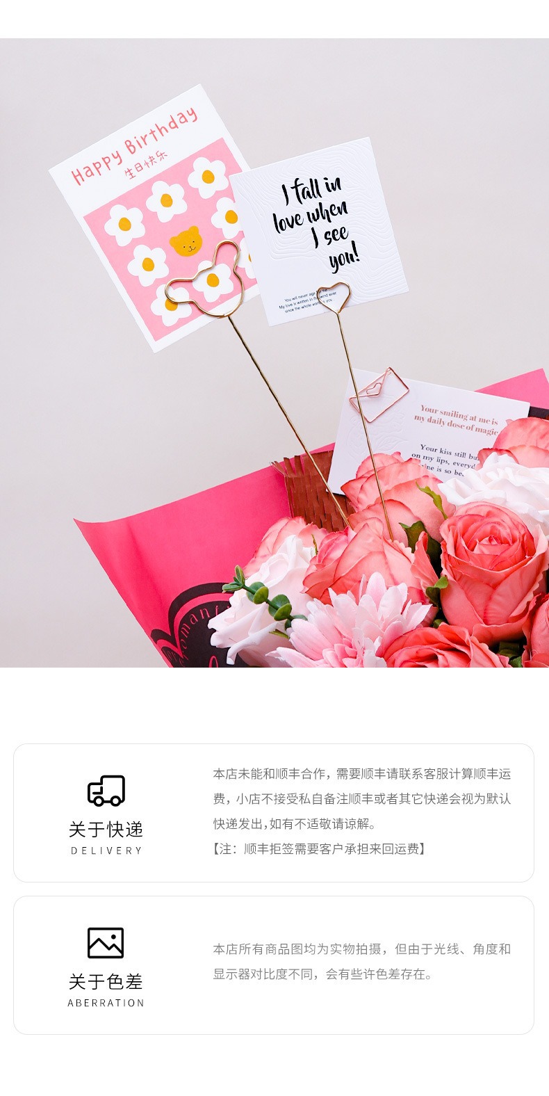 Pins wind metal tarjeta de felicitación al por mayor material de embalaje de flores frescas titular de tarjeta de bricolaje floristería material suministros florales arreglos florales